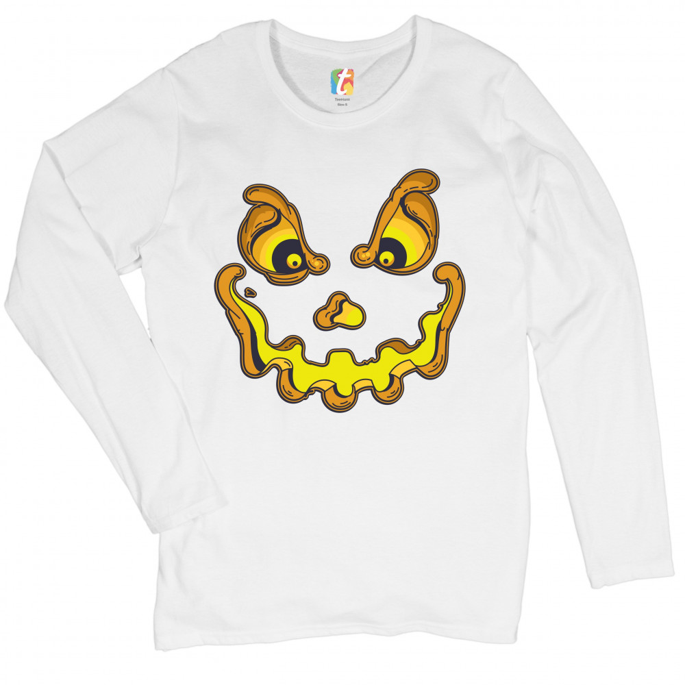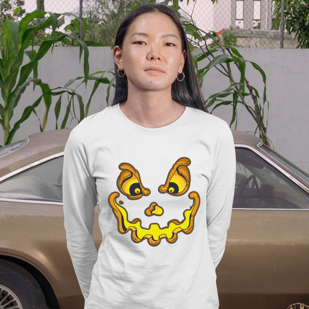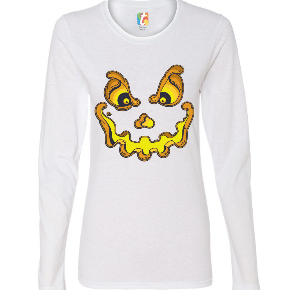JACK-O-LANTERN PUMPKIN FACE jack-o-lantern pumpkin women's long sleeve t-shirt trick-or-treat halloween white