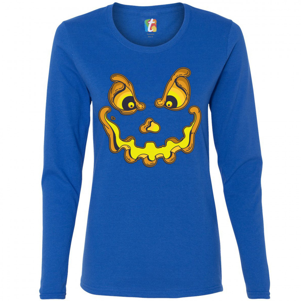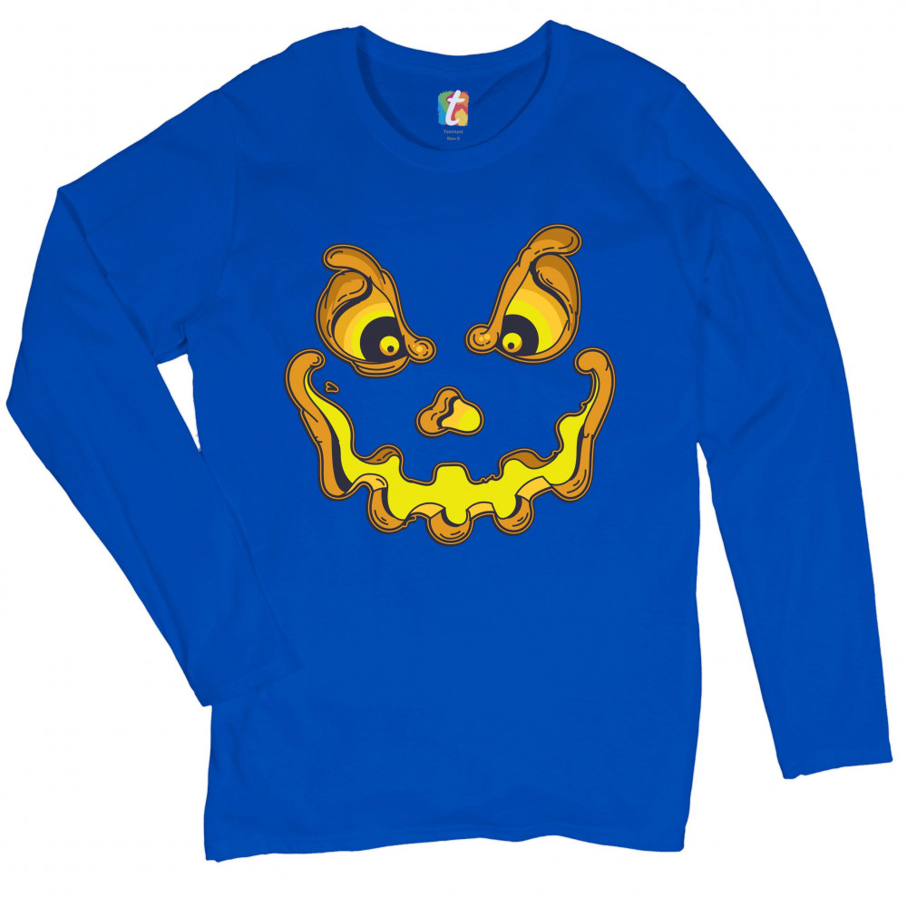 JACK-O-LANTERN PUMPKIN FACE jack-o-lantern pumpkin women's long sleeve t-shirt trick-or-treat halloween royal blue