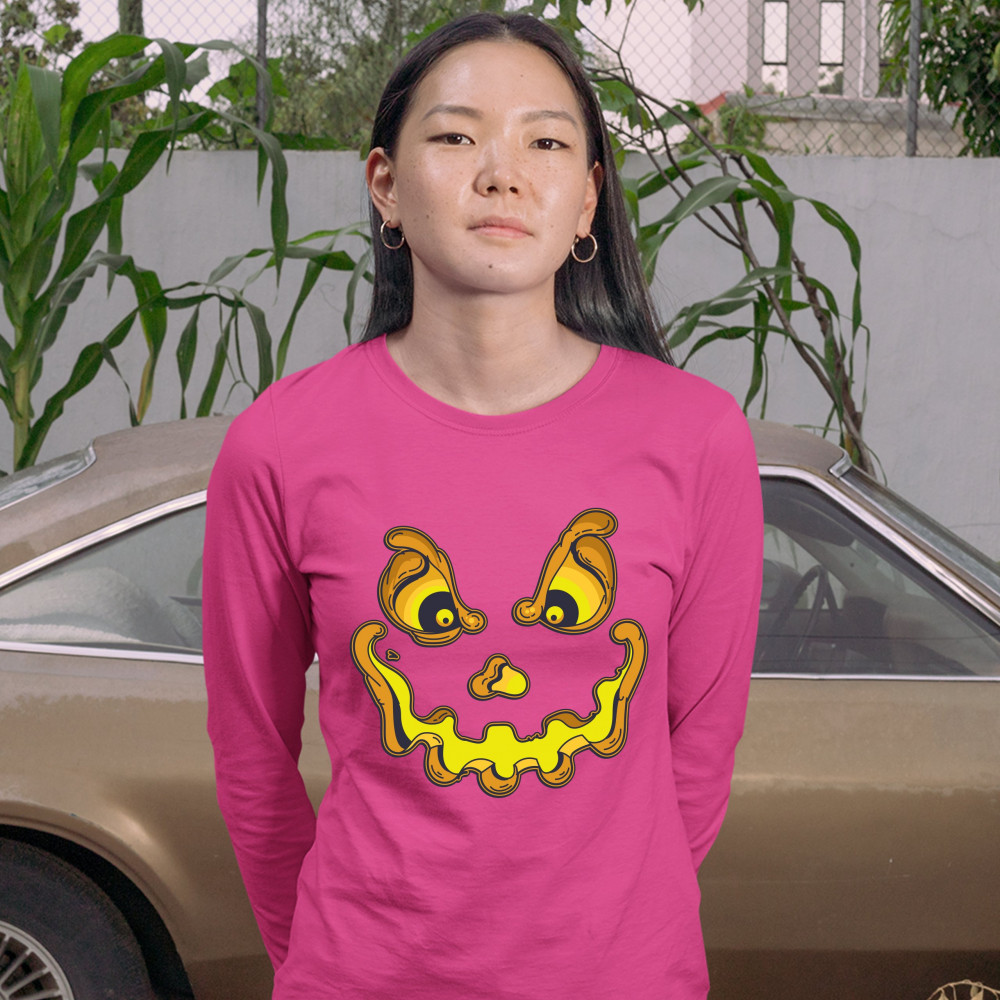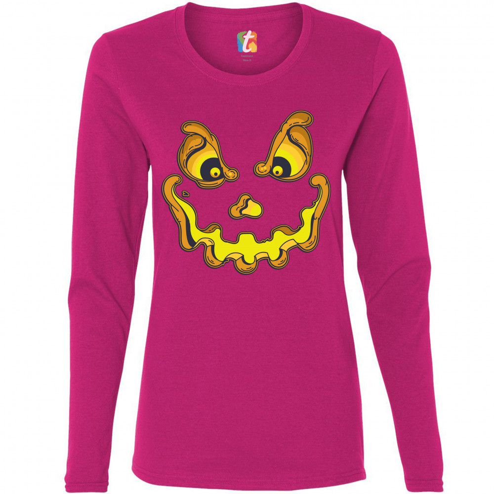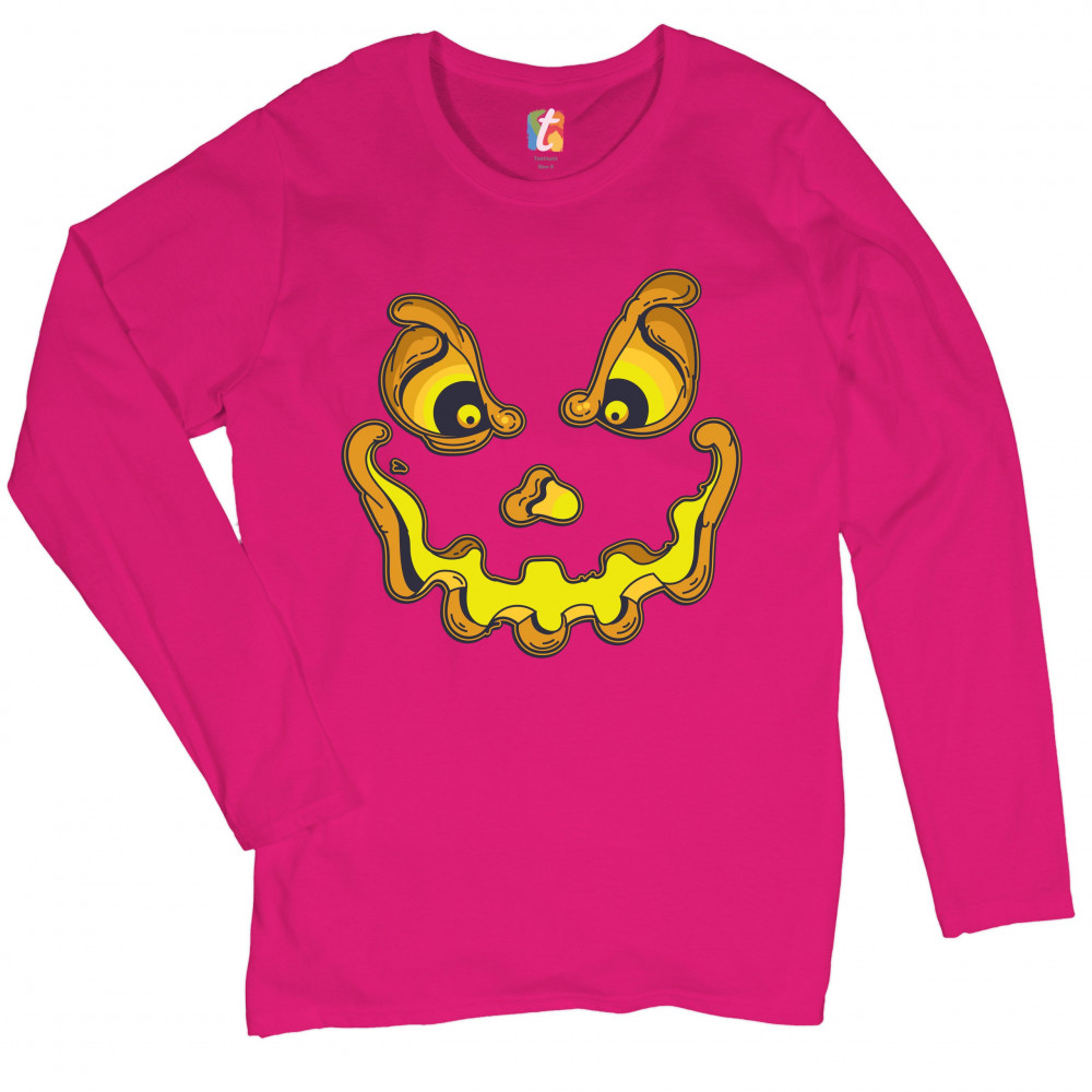 JACK-O-LANTERN PUMPKIN FACE jack-o-lantern pumpkin women's long sleeve t-shirt trick-or-treat halloween pink