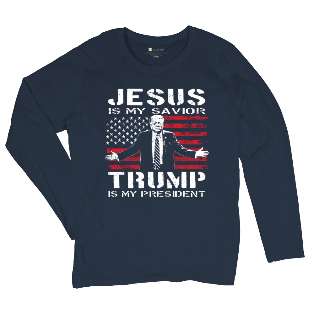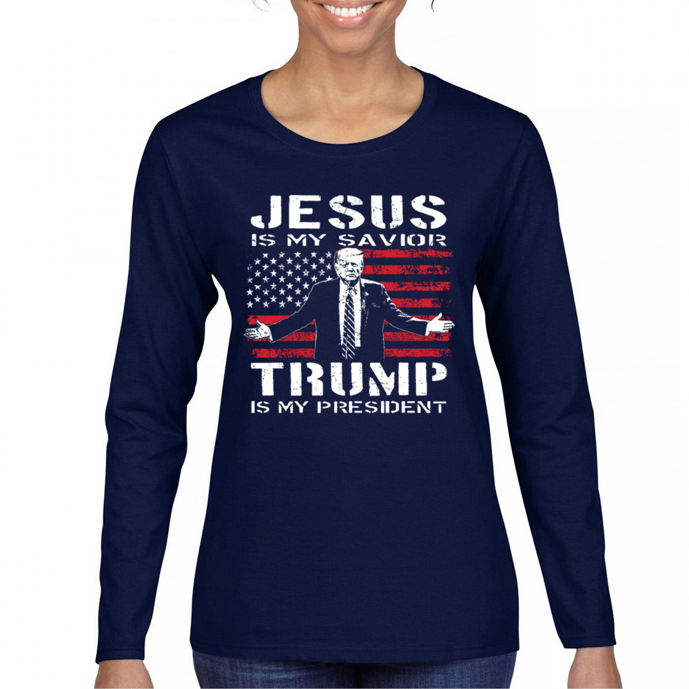 Express your unwavering faith and patriotism with the "Jesus is My Savior, Trump is My President" design. Perfect for conservatives, Republicans, and Trump supporters, this bold graphic combines spiritual devotion with a commitment to America First values. Celebrate the 47th President and the fight for freedom with this standout piece at rallies, events, or as a unique gift.