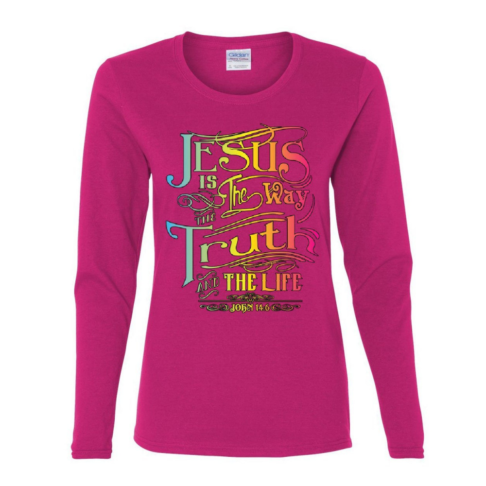 JESUS IS THE WAY women's long sleeve tee truth life bible religion god lord pray pink