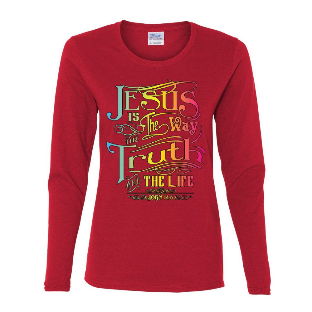 JESUS IS THE WAY women's long sleeve tee truth life bible religion god lord pray red