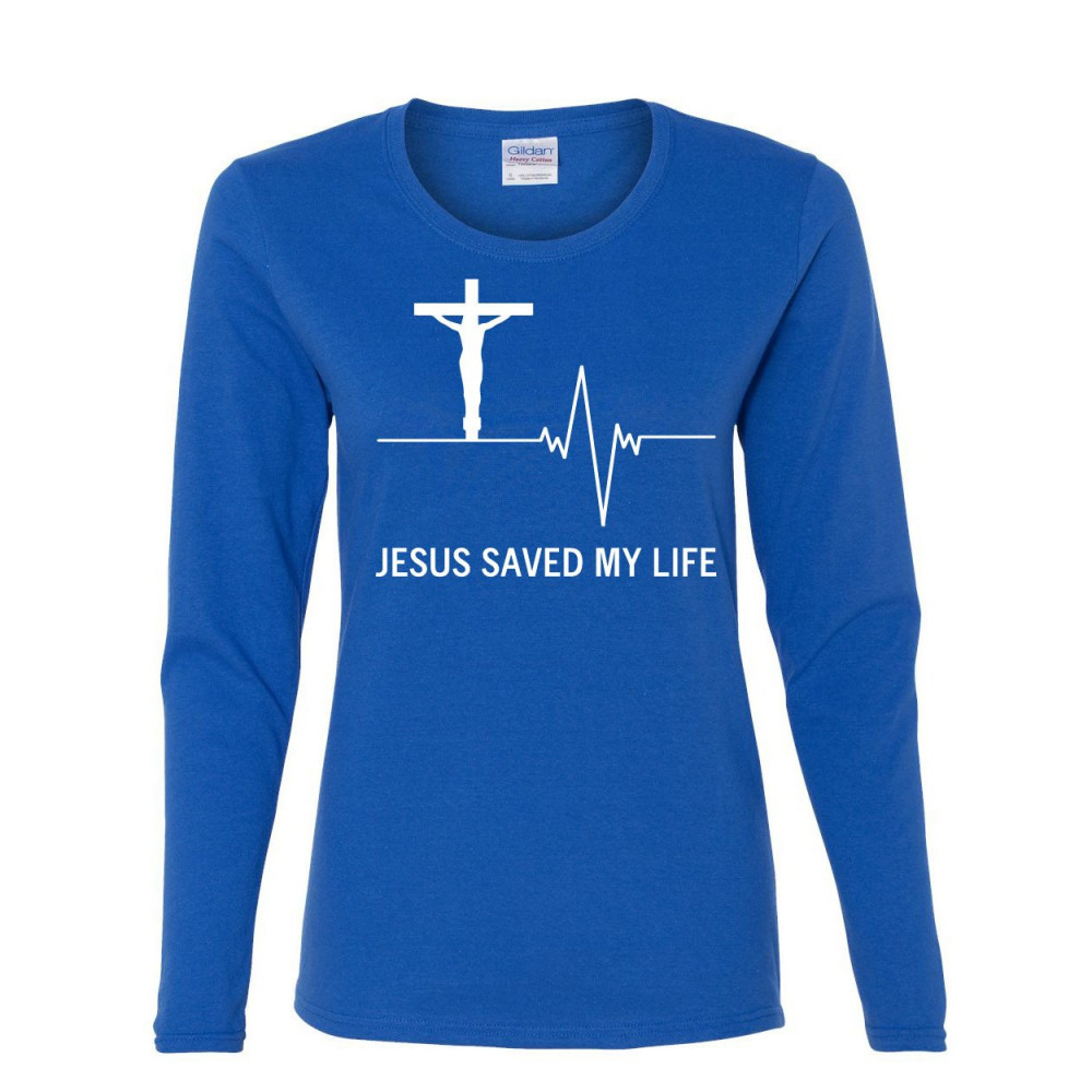 JESUS SAVED MY LIFE long sleeve t-shirt christian religion faith god royal blue