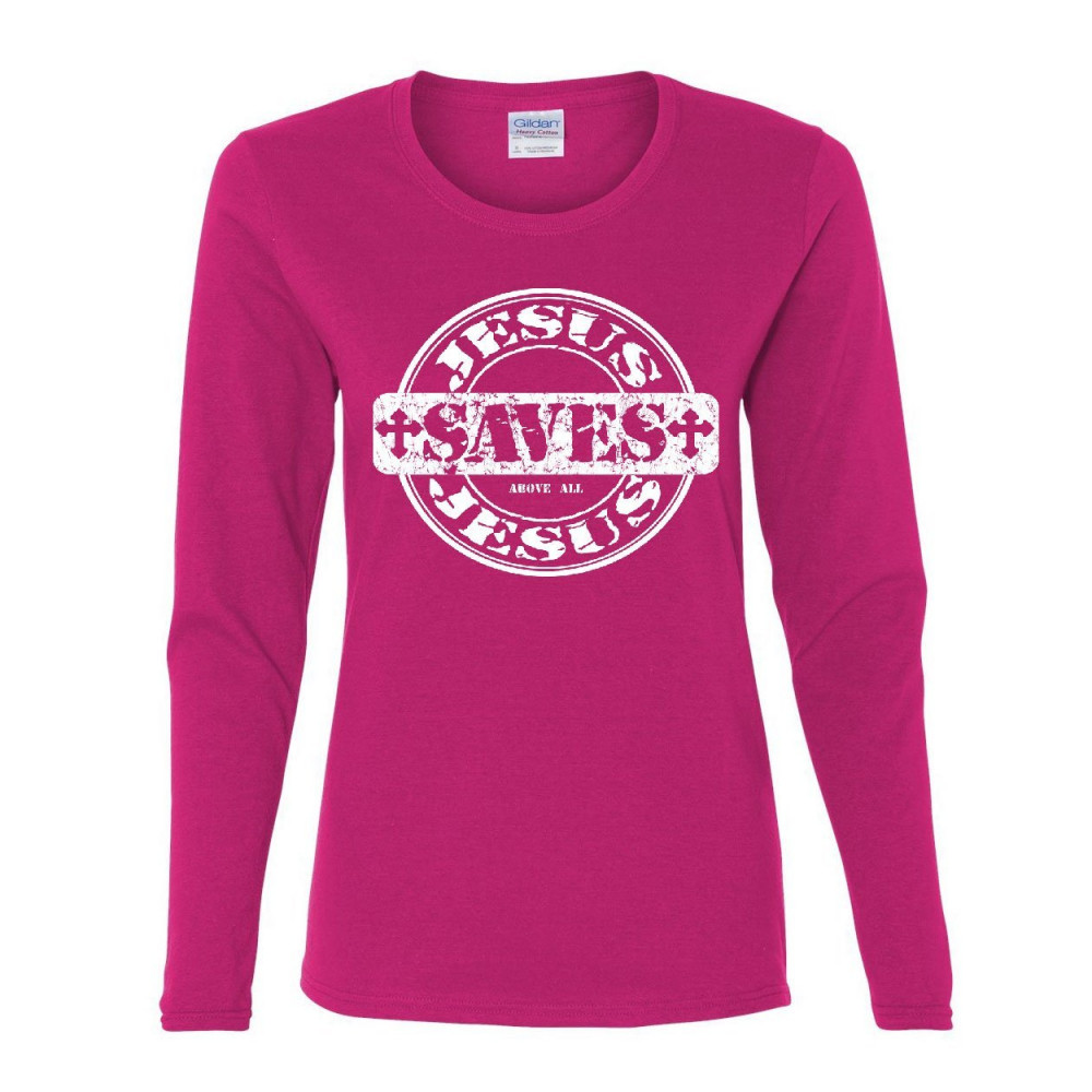 JESUS SAVES JESUS ABOVE ALL jesus saves women's long sleeve tee jesus christ above all christianity bible pink