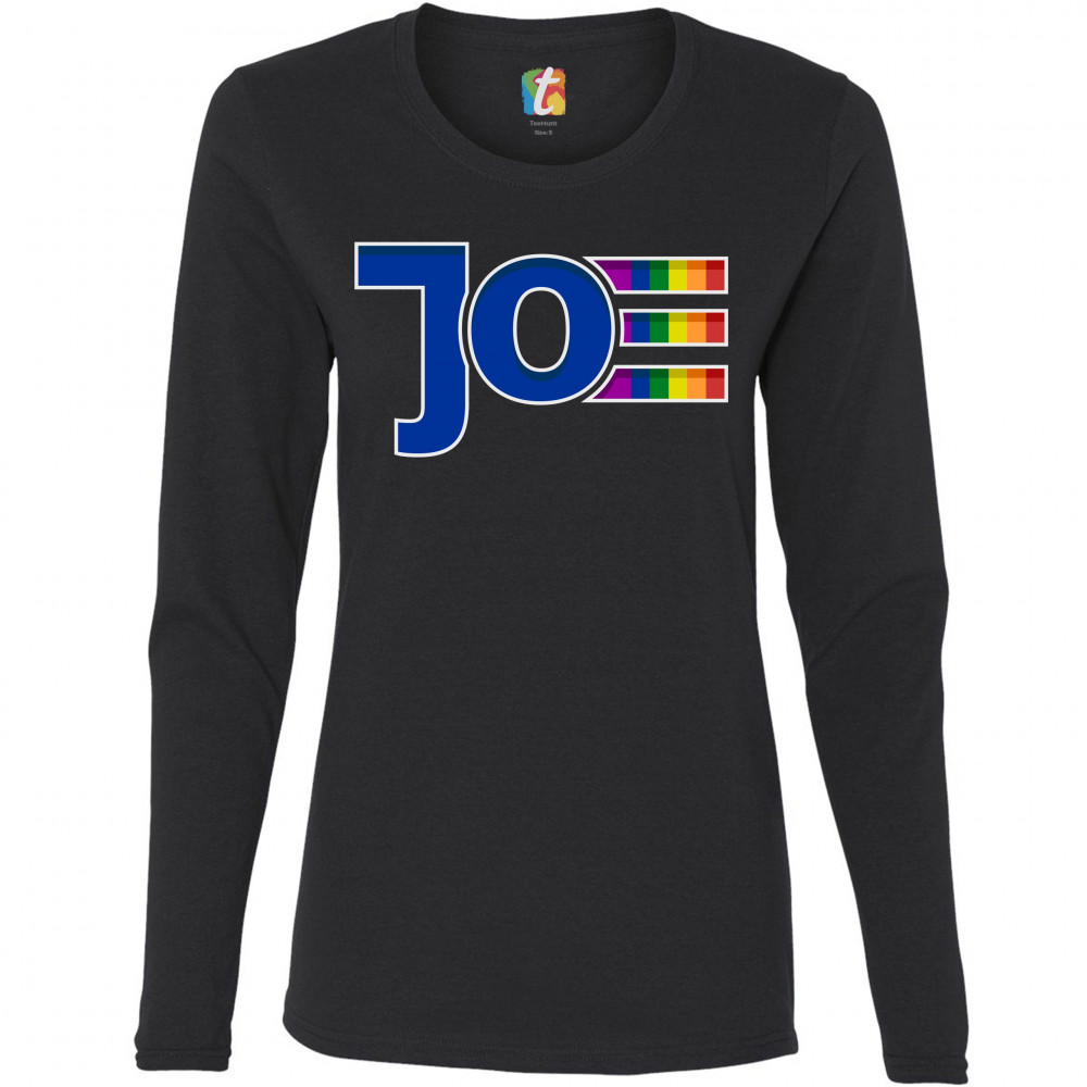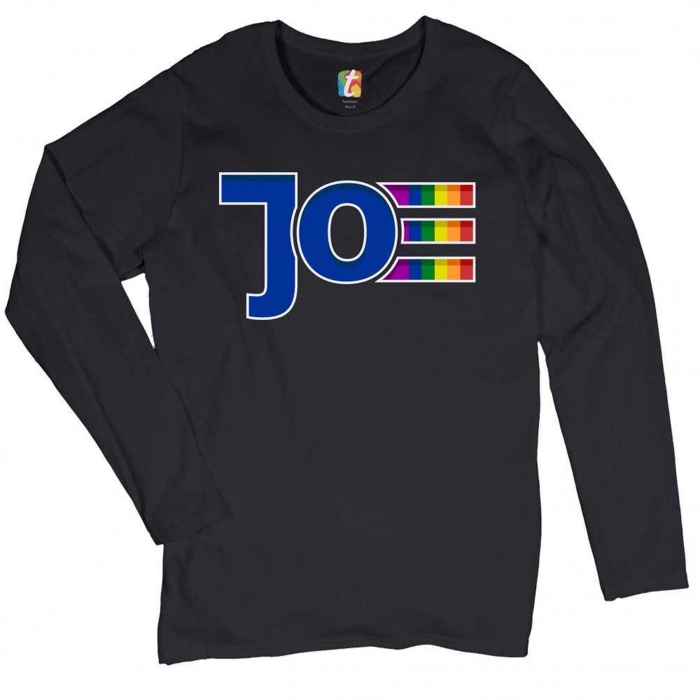 A political print featuring the name of the democratic presidential candidate "Joe". The letter "e" is painted with the colors of the lgbt rainbow. It is a great choice to wear to show your support for the democratic presidential nominee and his vice pres