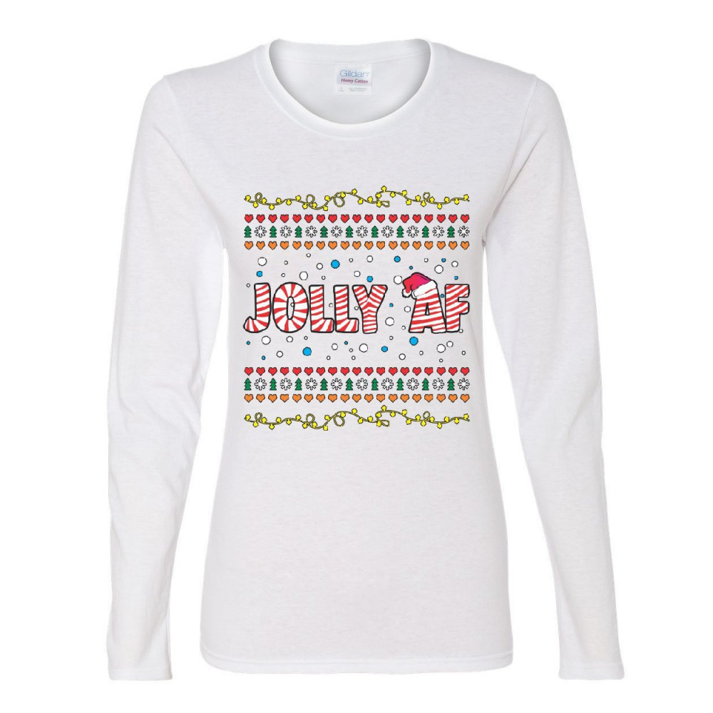 JOLLY AF women's long sleeve tee funny christmas eve holiday spirit xmas santa white