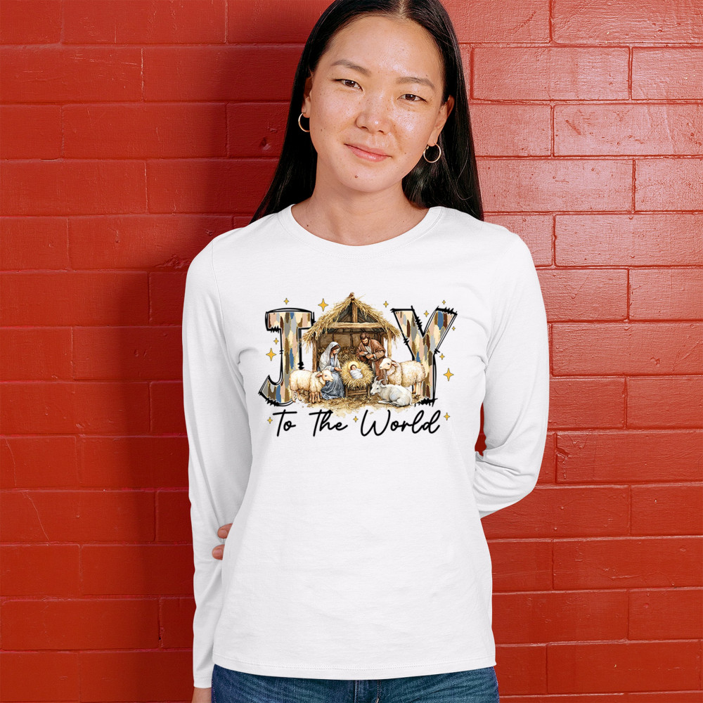 JOY nativity design featuring the Holy Family and manger scene—perfect for celebrating faith, Christmas meaning, and the peaceful spirit of the season.