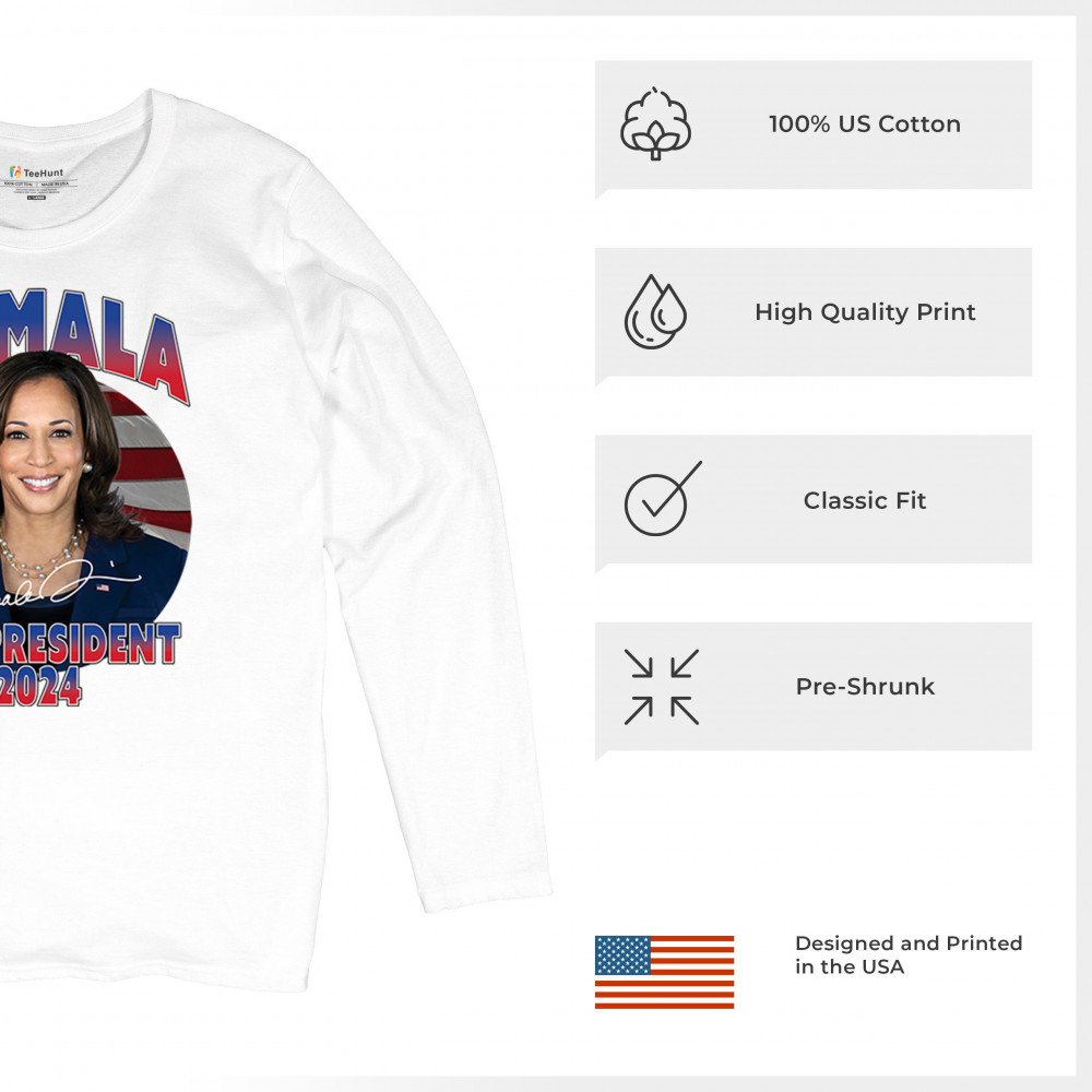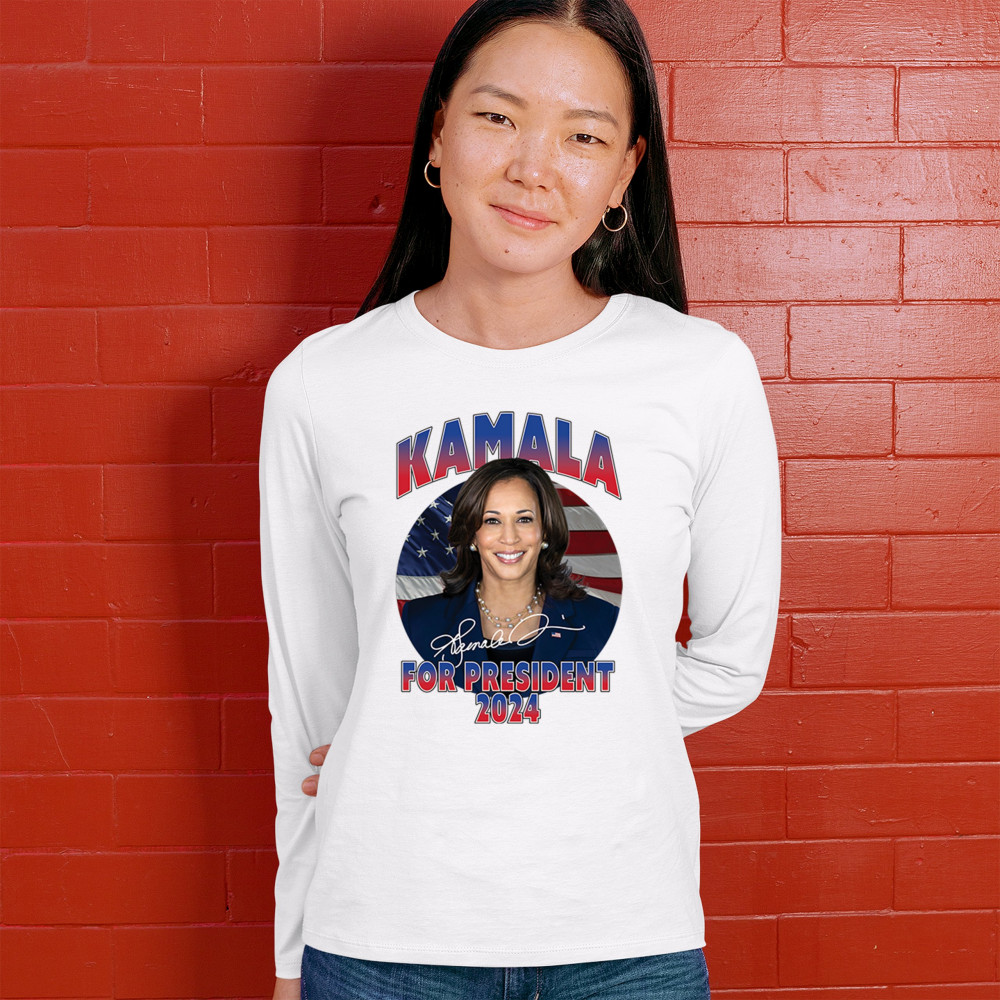 Support Kamala Harris's 2024 presidential campaign with this bold design. Celebrate liberal values, women's rights, and LGBTQ+ equality. Let's Win This!