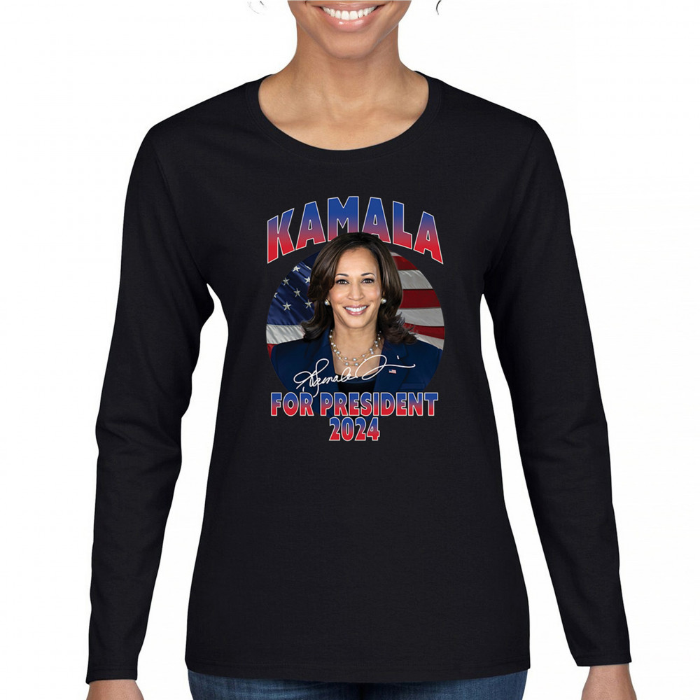 KAMALA FOR PRESIDENT 2024 women's long sleeve t-shirt harris i'm speaking 47 black