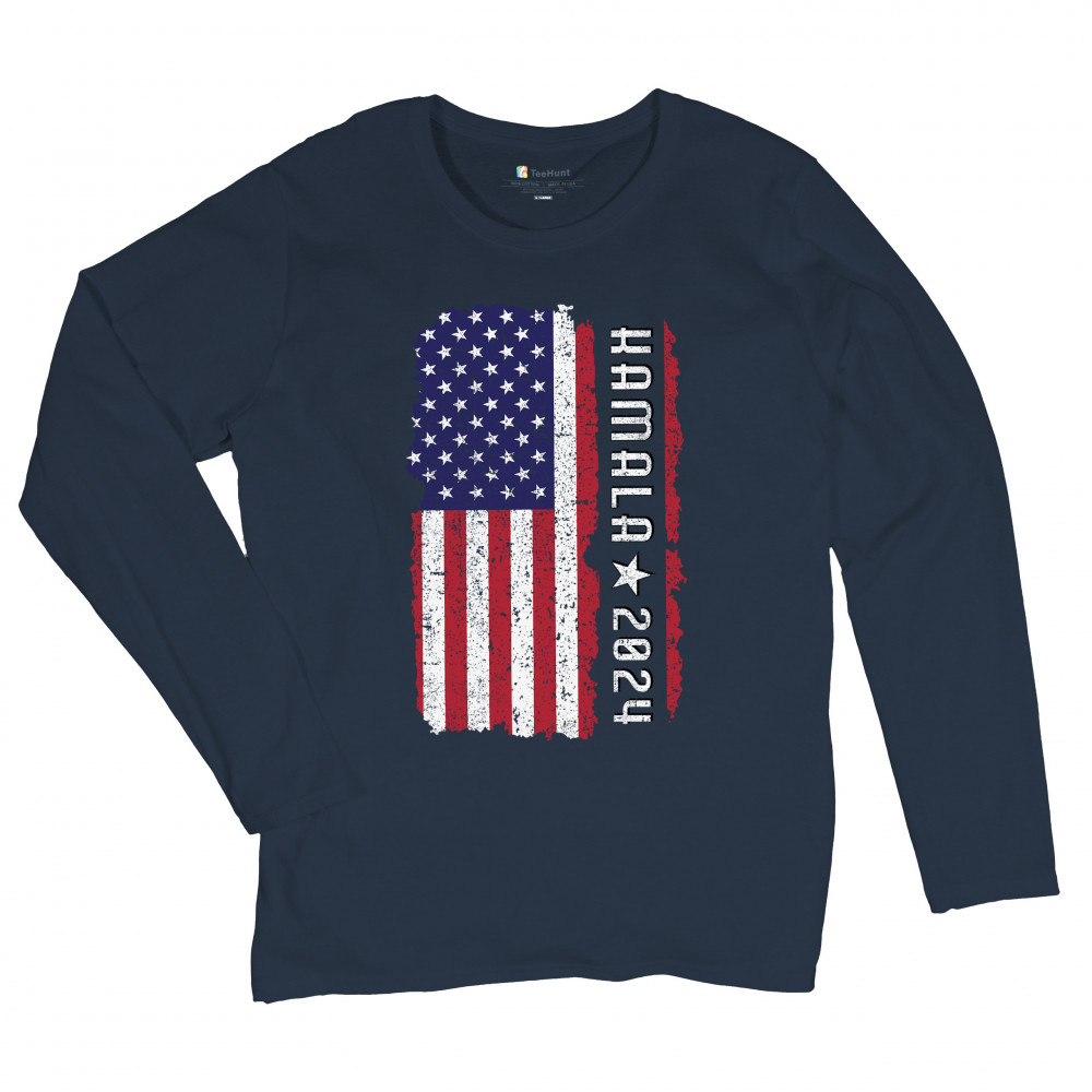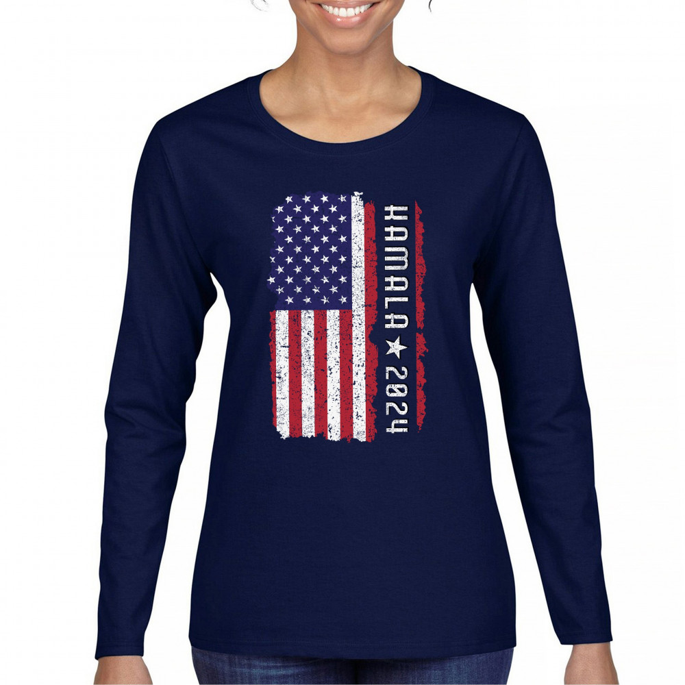 Support Kamala Harris 2024 with a bold design featuring a distressed American flag. Perfect for rallies and political events. Celebrate diversity!