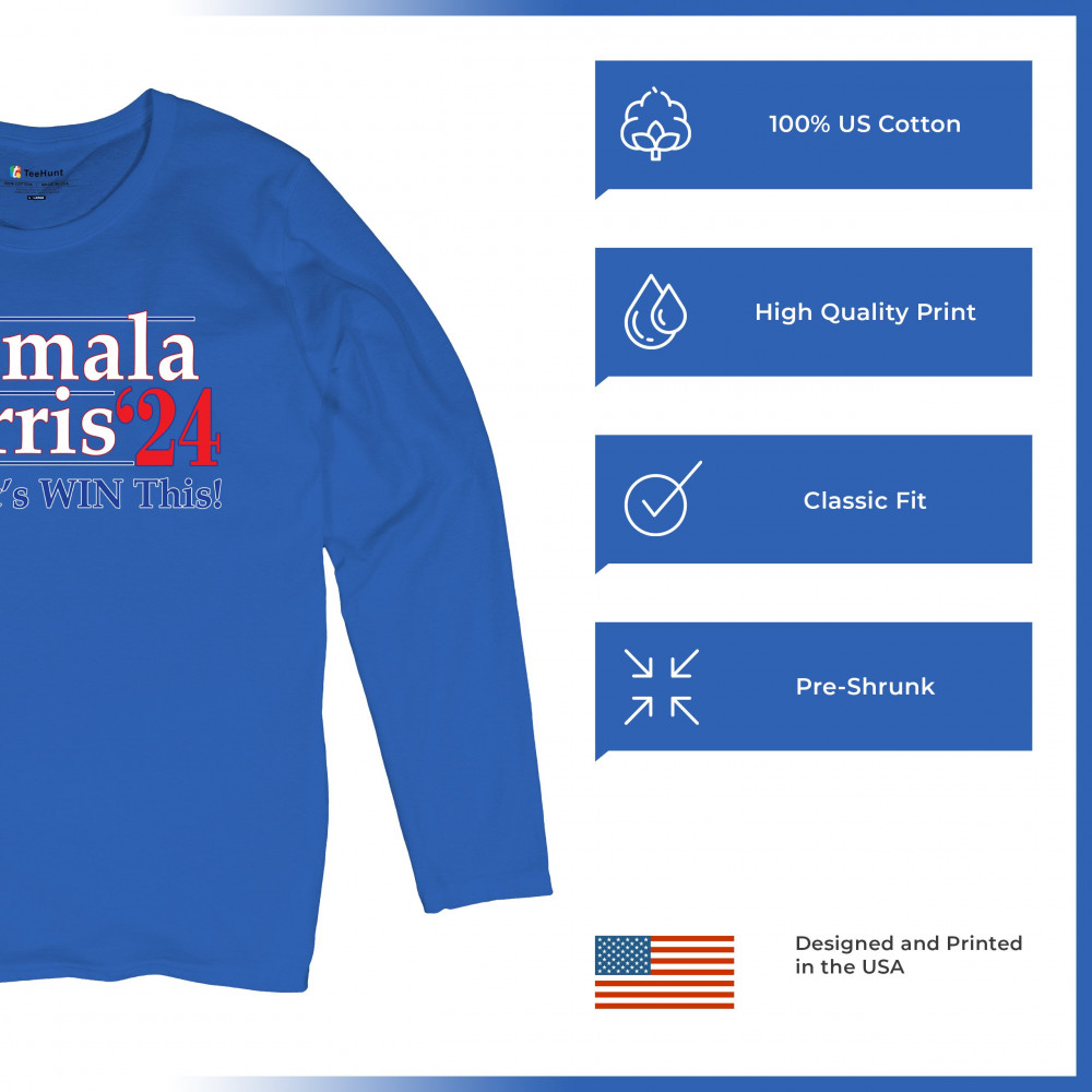 Support Kamala Harris's 2024 campaign with this bold design featuring "Let's WIN This!" Perfect for rallies, elections, and everyday wear.