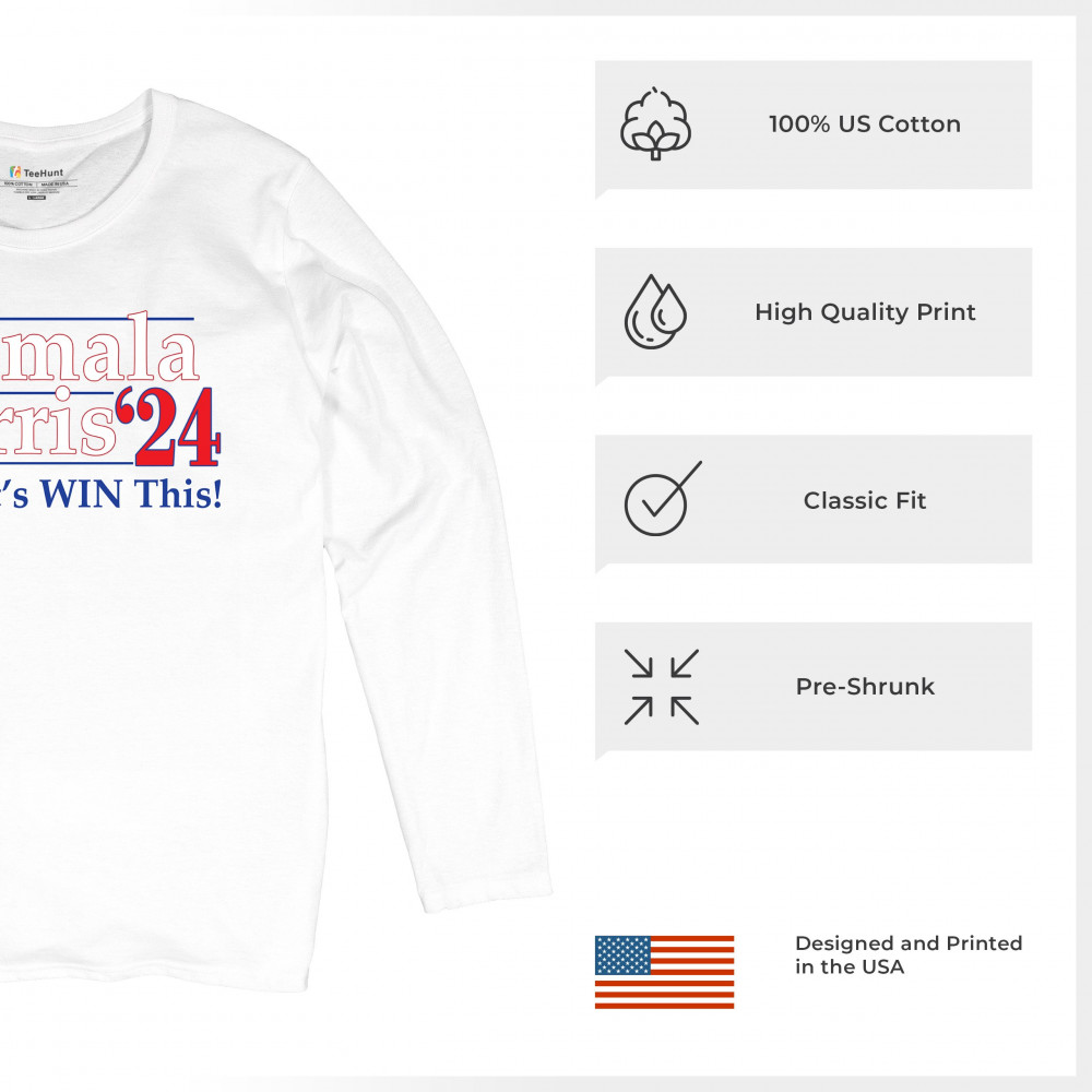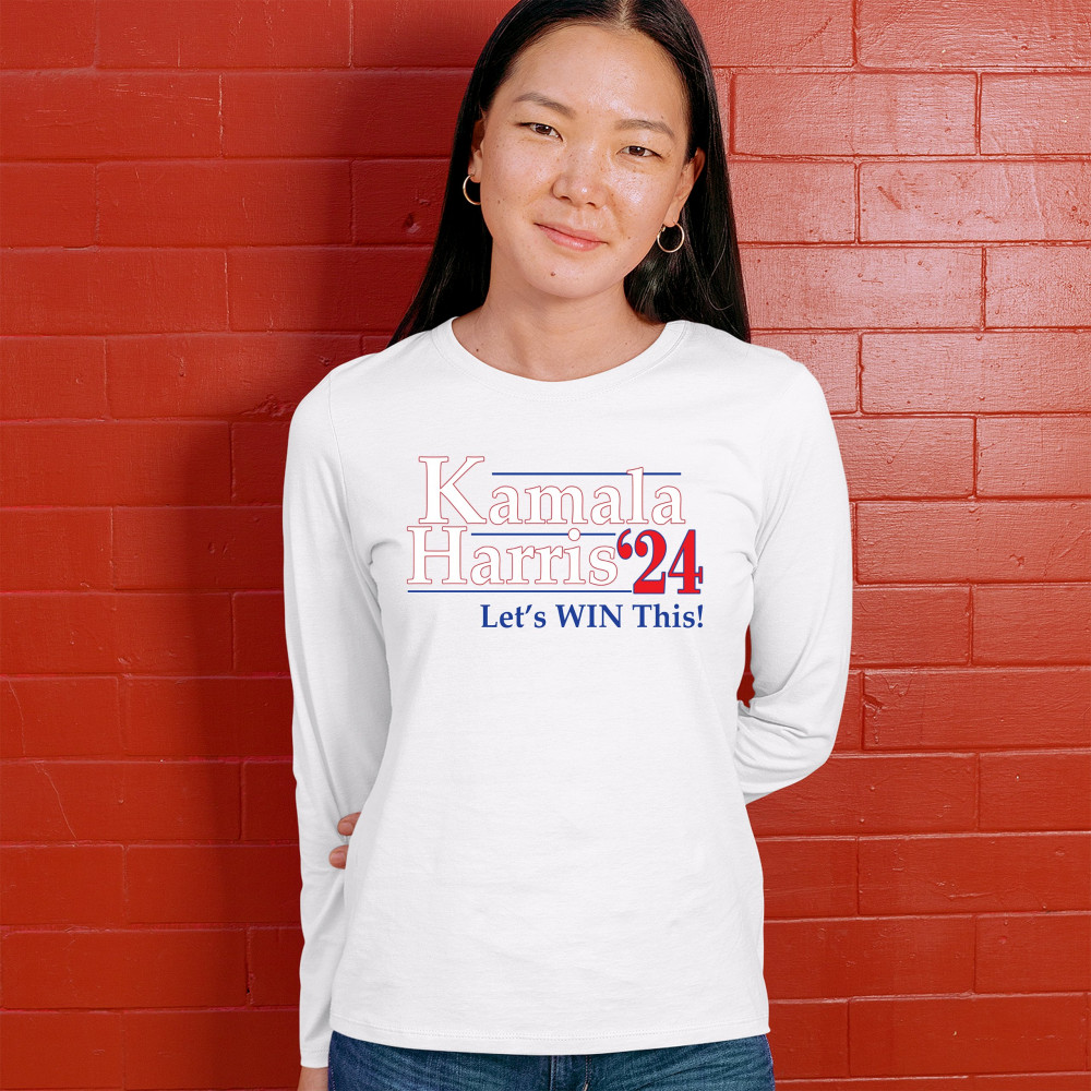 Support Kamala Harris's 2024 campaign with this bold design featuring "Let's WIN This!" Perfect for rallies, elections, and everyday wear.