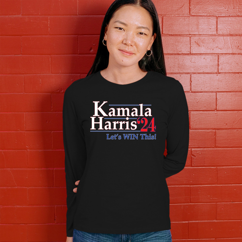 Support Kamala Harris's 2024 campaign with this bold design featuring "Let's WIN This!" Perfect for rallies, elections, and everyday wear.