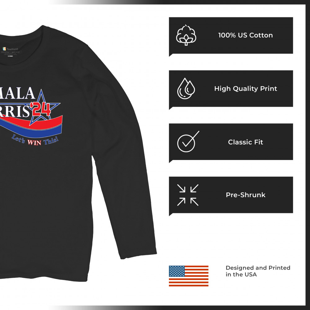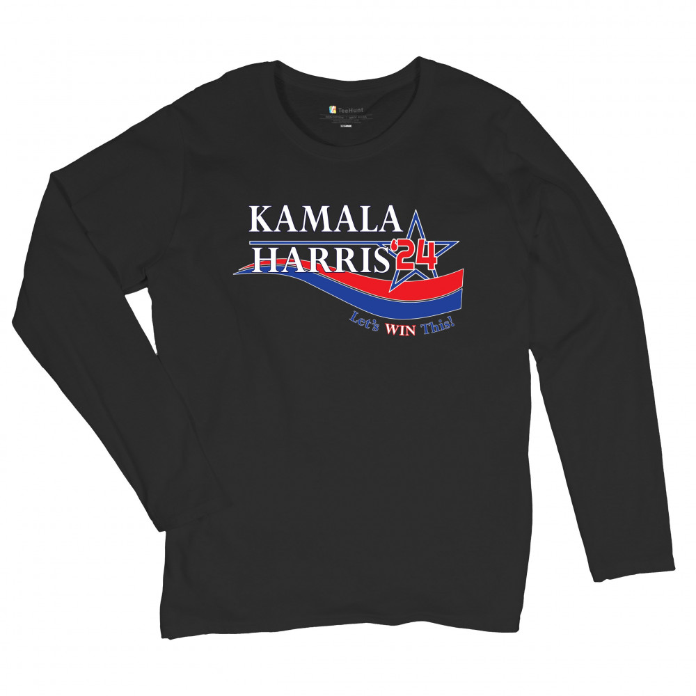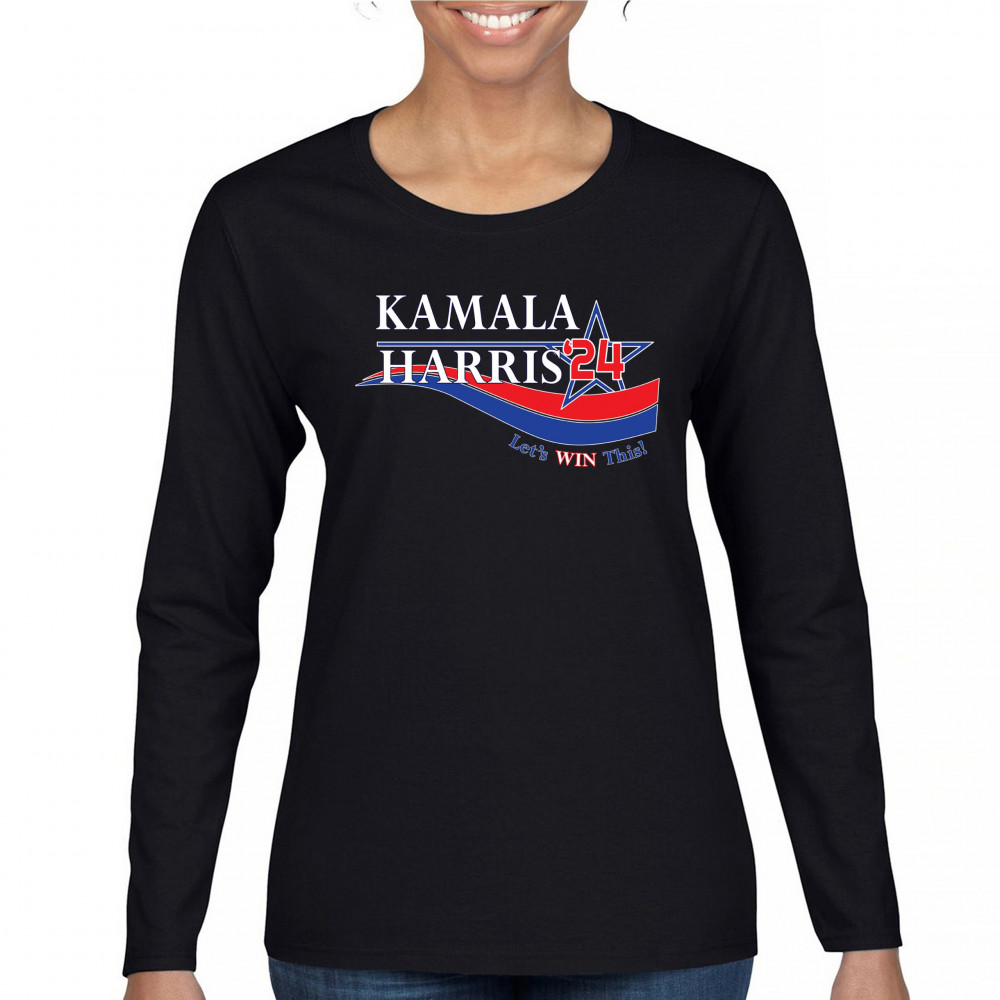 KAMALA HARRIS 24 women's long sleeve t-shirt let's win this madam president usa black
