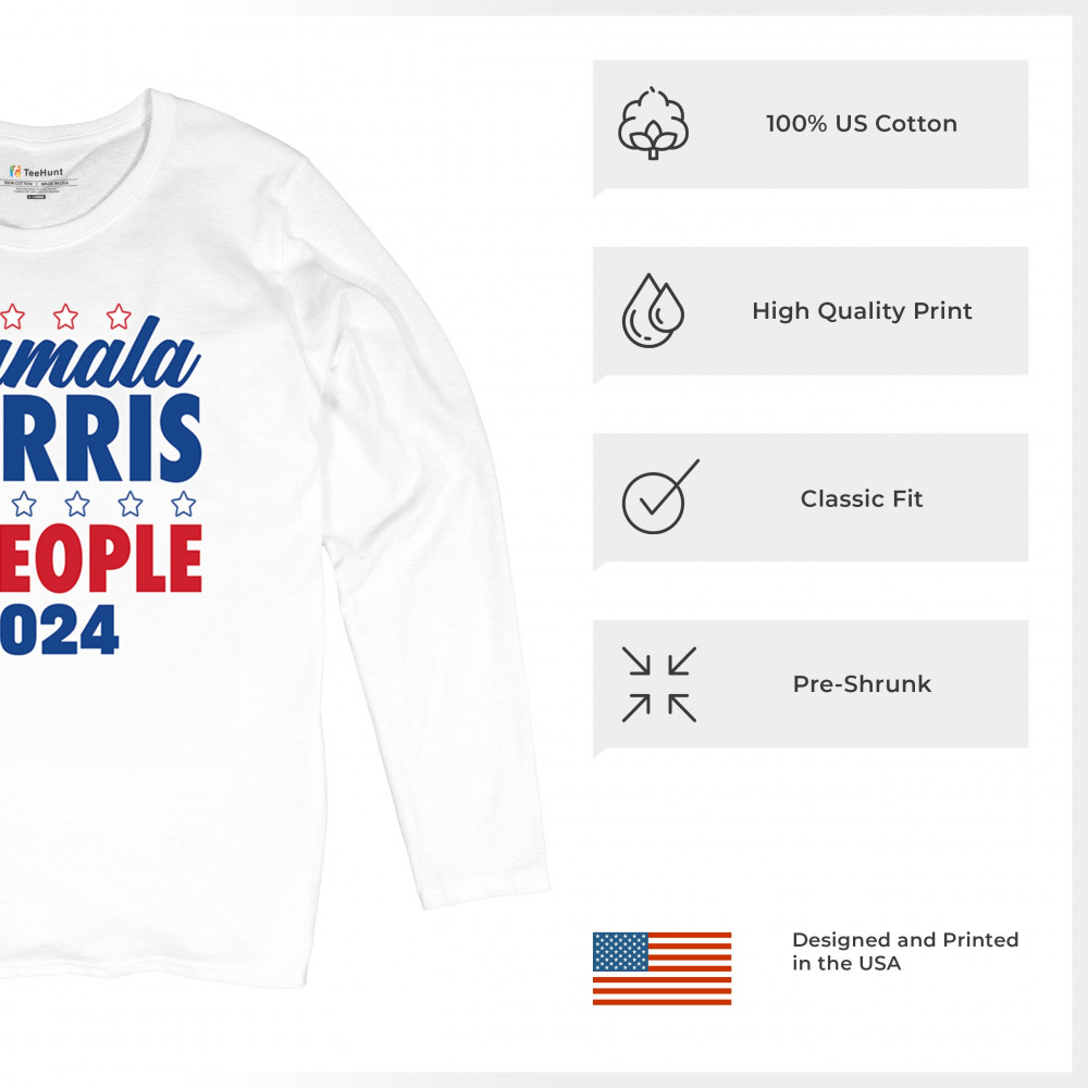 This striking design promotes Kamala Harris and Tim Walz's 2024 campaign, focusing on progressive values and liberal causes. It underscores support for women's rights, LGBTQ+ communities, and a government that prioritizes the people. With its bold colors and message, it's perfect for rallying support and making a statement. Stand up for justice, equality, and a brighter future with this design. Join the movement and wear your support proudly. Let's Win This!