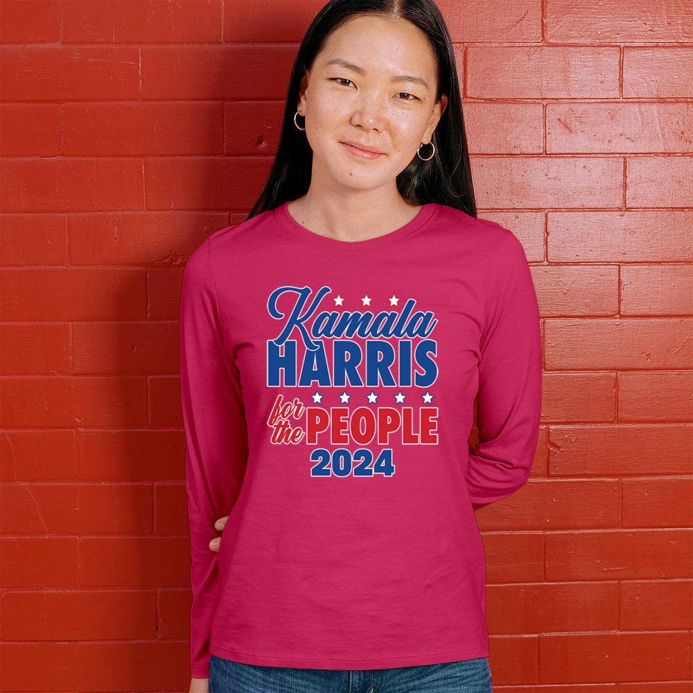 This striking design promotes Kamala Harris and Tim Walz's 2024 campaign, focusing on progressive values and liberal causes. It underscores support for women's rights, LGBTQ+ communities, and a government that prioritizes the people. With its bold colors and message, it's perfect for rallying support and making a statement. Stand up for justice, equality, and a brighter future with this design. Join the movement and wear your support proudly. Let's Win This!