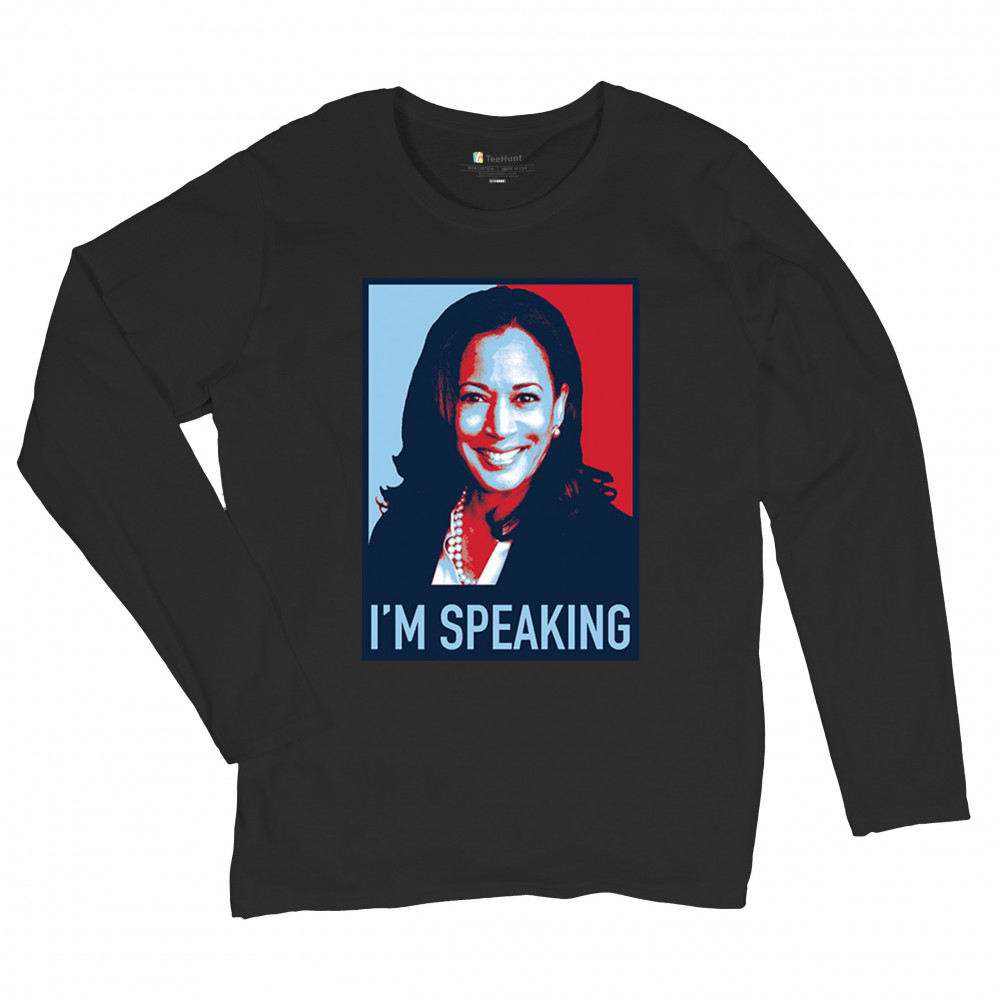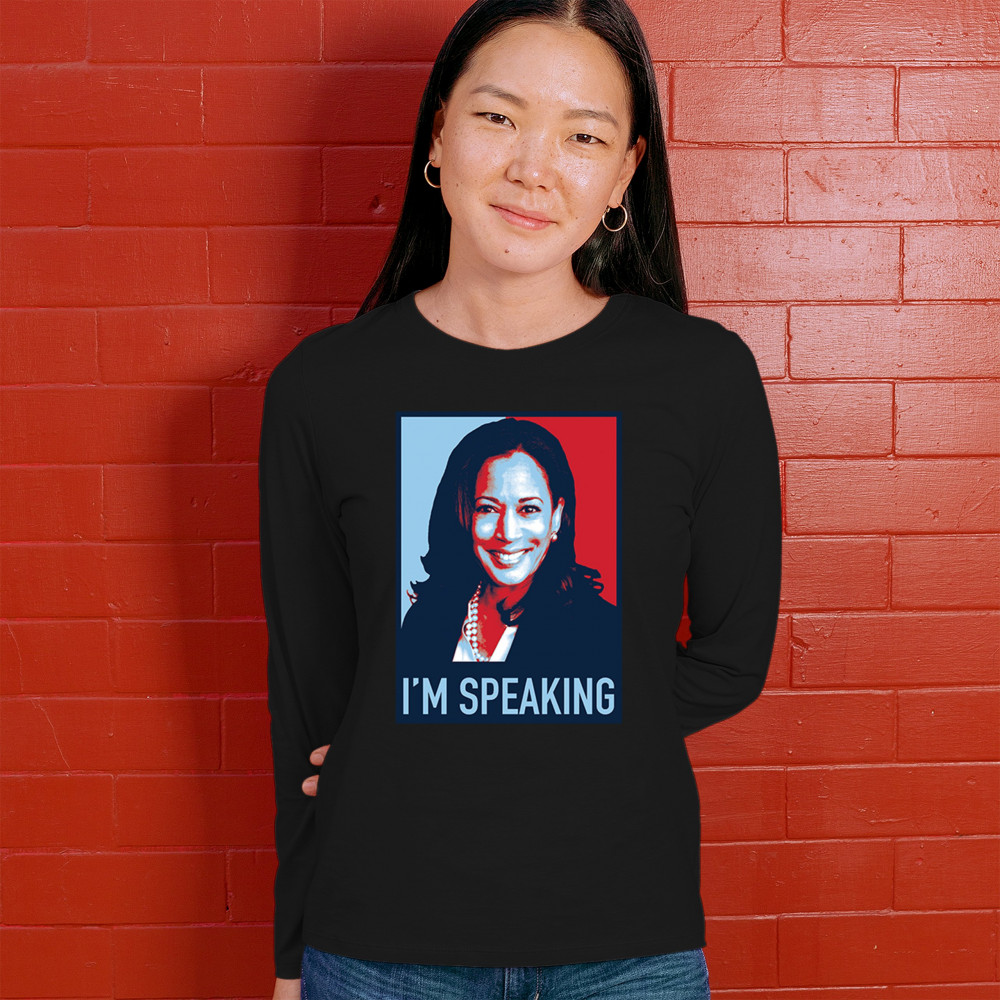 Show your support for Kamala Harris and Tim Walz with this "I'm Speaking" design. A bold statement celebrating liberal values and progressive policies. "Let's Win This"