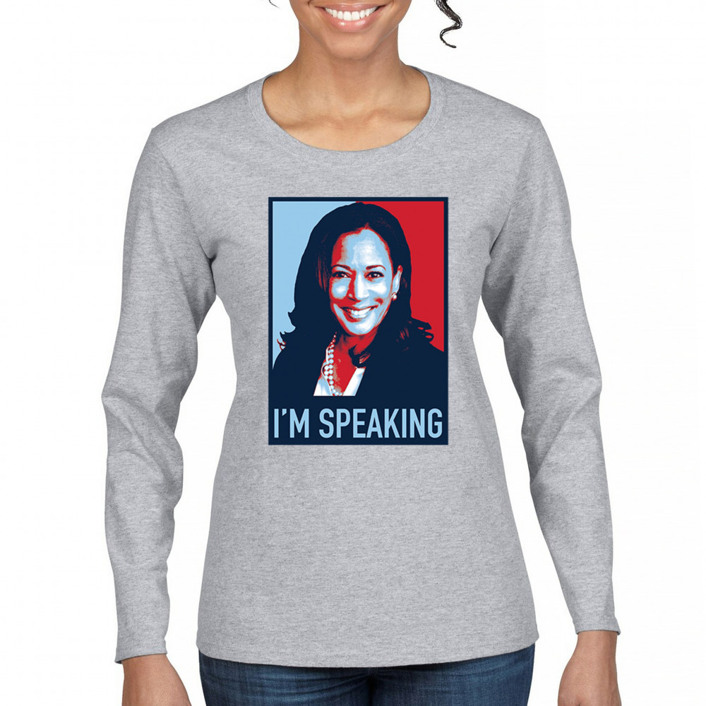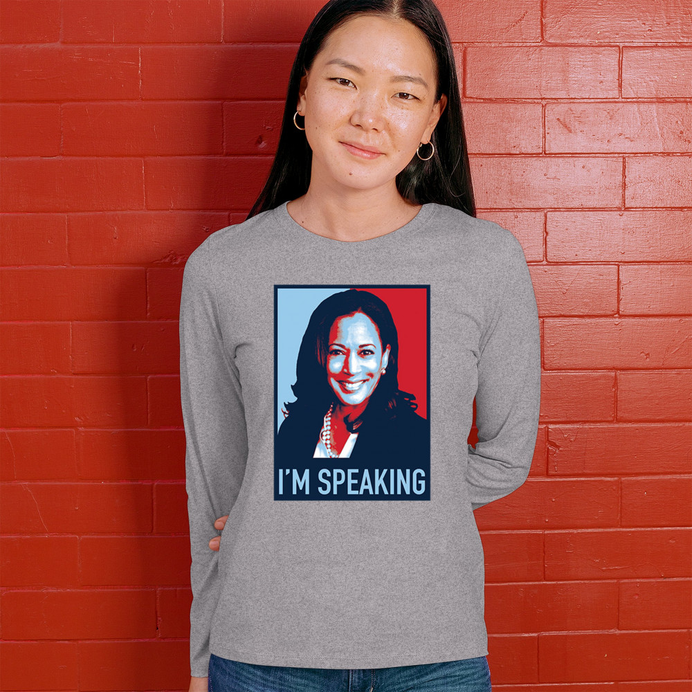 Show your support for Kamala Harris and Tim Walz with this "I'm Speaking" design. A bold statement celebrating liberal values and progressive policies. "Let's Win This"