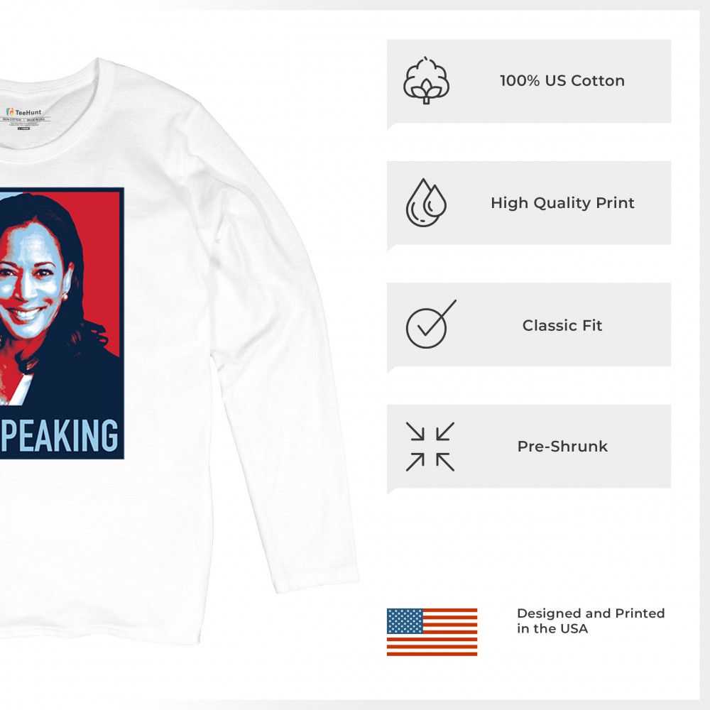 Featuring the iconic "I'm Speaking" image of Kamala Harris, this design is perfect for showing your support for the Harris-Walz 2024 campaign. The red, white, and blue colors make a bold statement, celebrating the values of equality and justice. With a focus on liberal values, including LGBTQ+ rights, women's empowerment, and progressive policies, this design is ideal for rallies or everyday wear. Stand up for what you believe in and wear this design with pride. "Let's Win This"