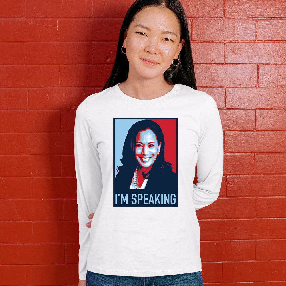 Show your support for Kamala Harris and Tim Walz with this "I'm Speaking" design. A bold statement celebrating liberal values and progressive policies. "Let's Win This"