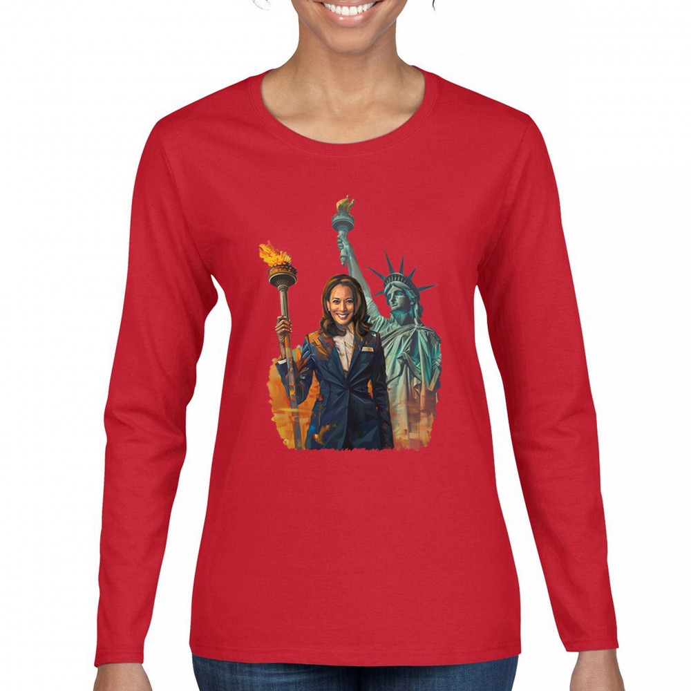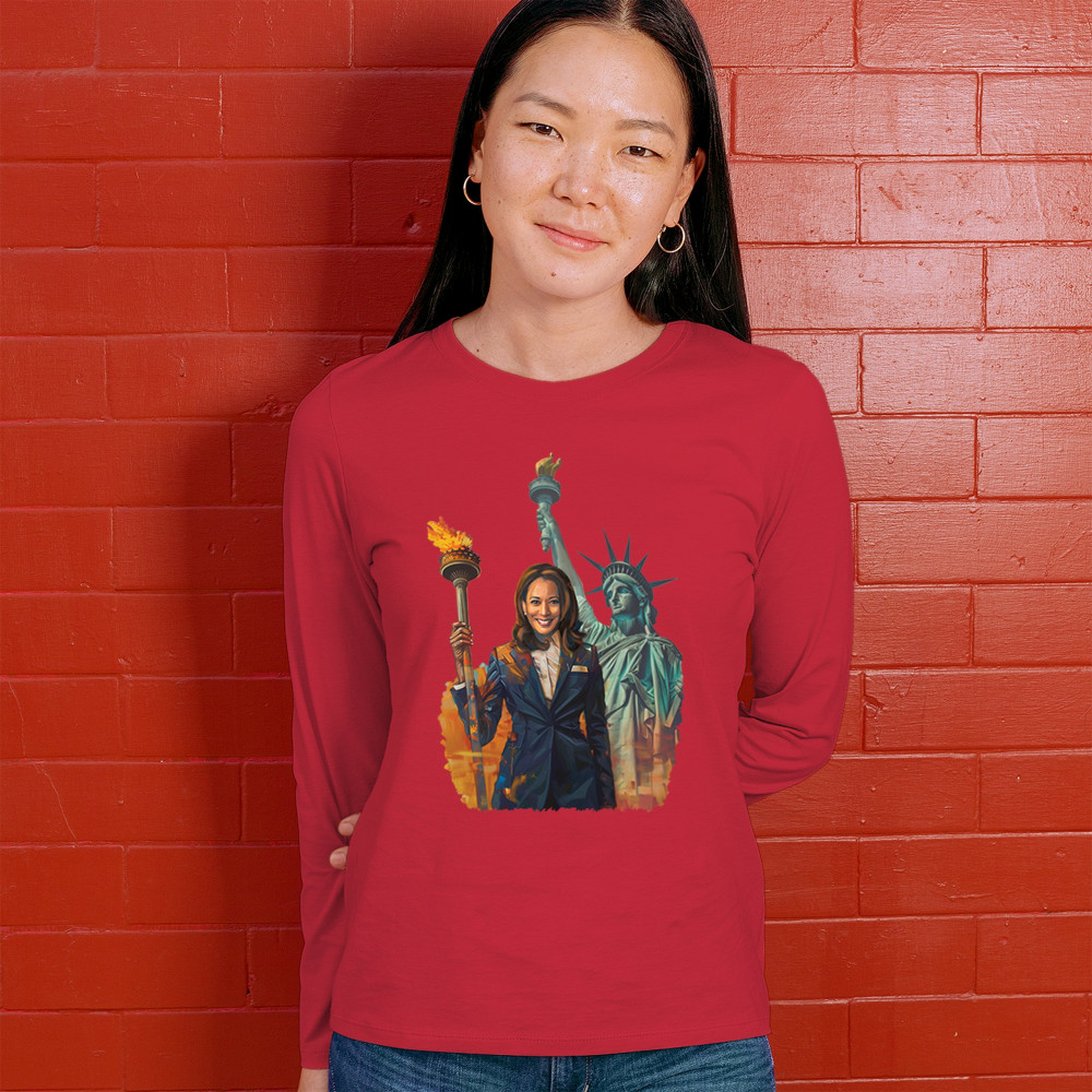 Show your support for Harris-Walz 2024 with this bold design featuring Kamala Harris and the Statue of Liberty. Stand for justice, equality, and a brighter future.