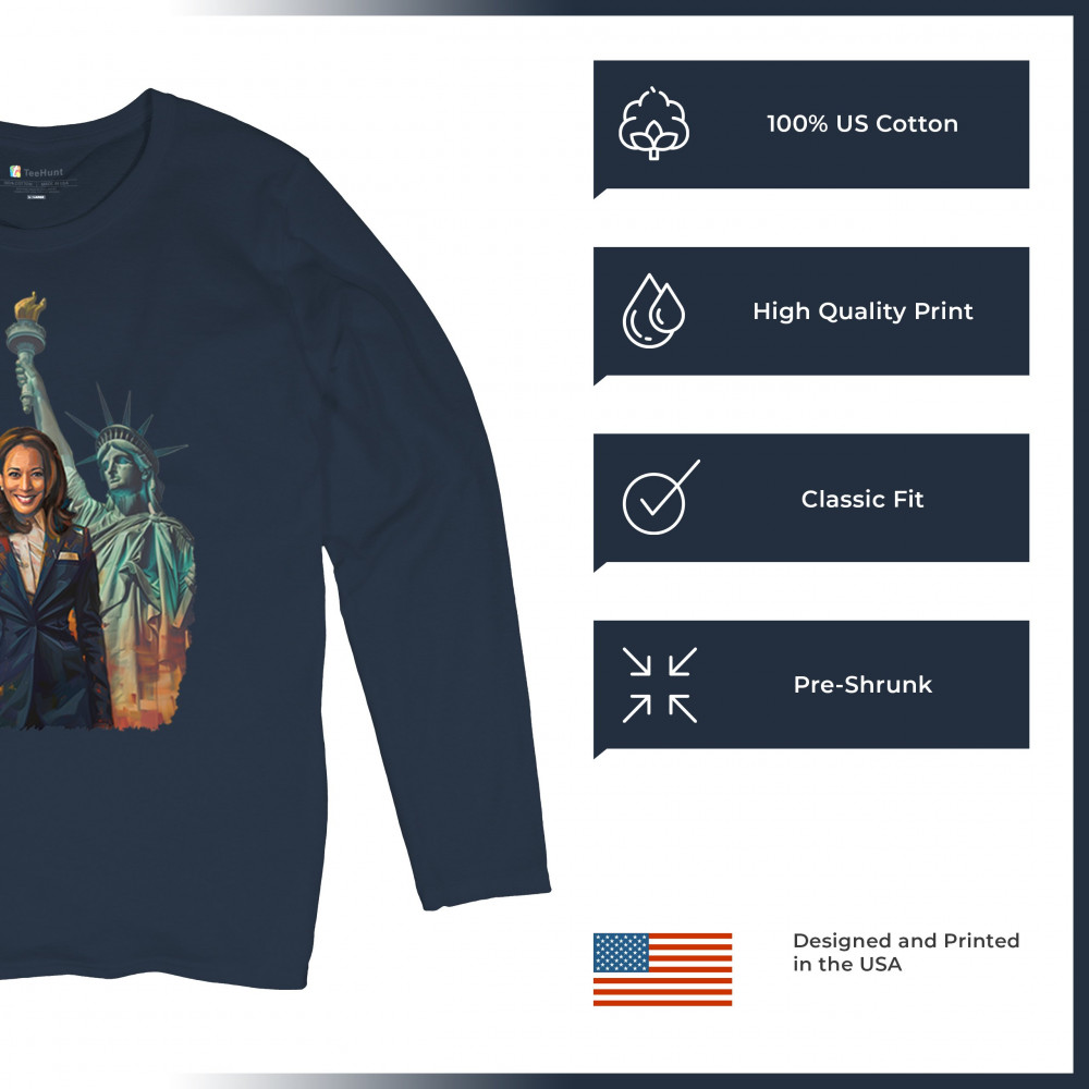 Show your support for Harris-Walz 2024 with this bold design featuring Kamala Harris and the Statue of Liberty. Stand for justice, equality, and a brighter future.