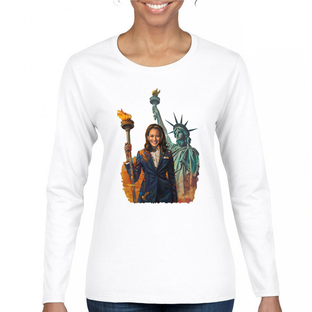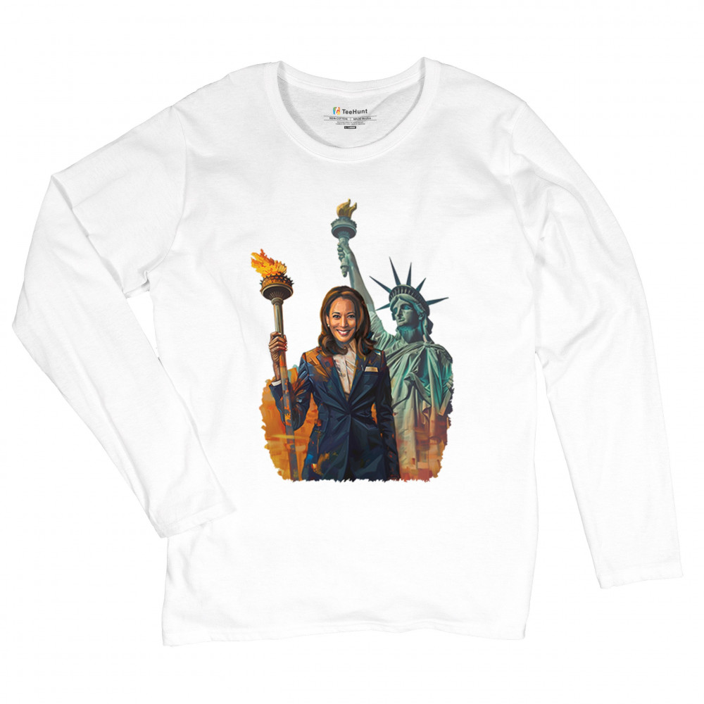 Show your support for Harris-Walz 2024 with this bold design featuring Kamala Harris and the Statue of Liberty. Stand for justice, equality, and a brighter future.