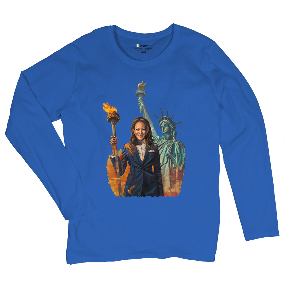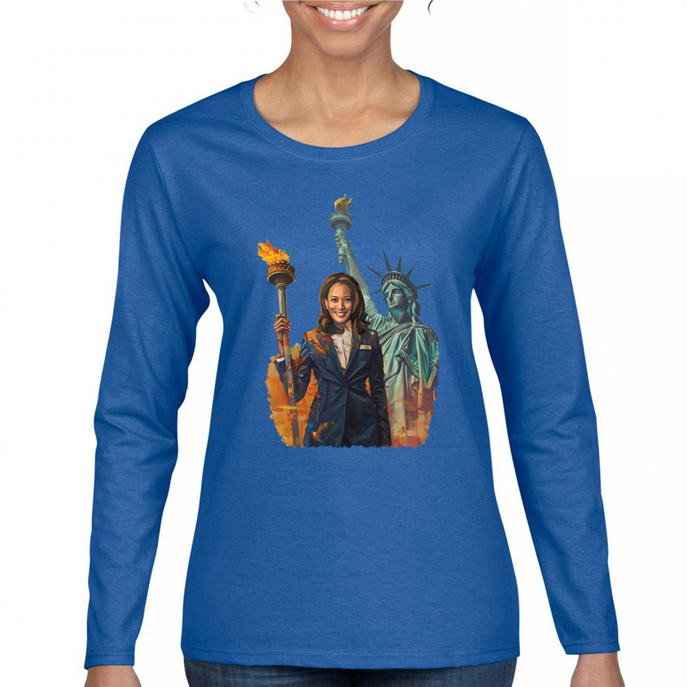 Show your support for Harris-Walz 2024 with this bold design featuring Kamala Harris and the Statue of Liberty. Stand for justice, equality, and a brighter future.