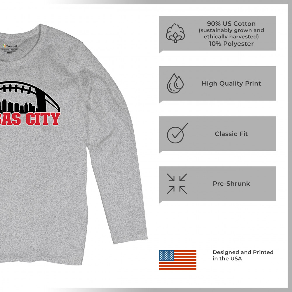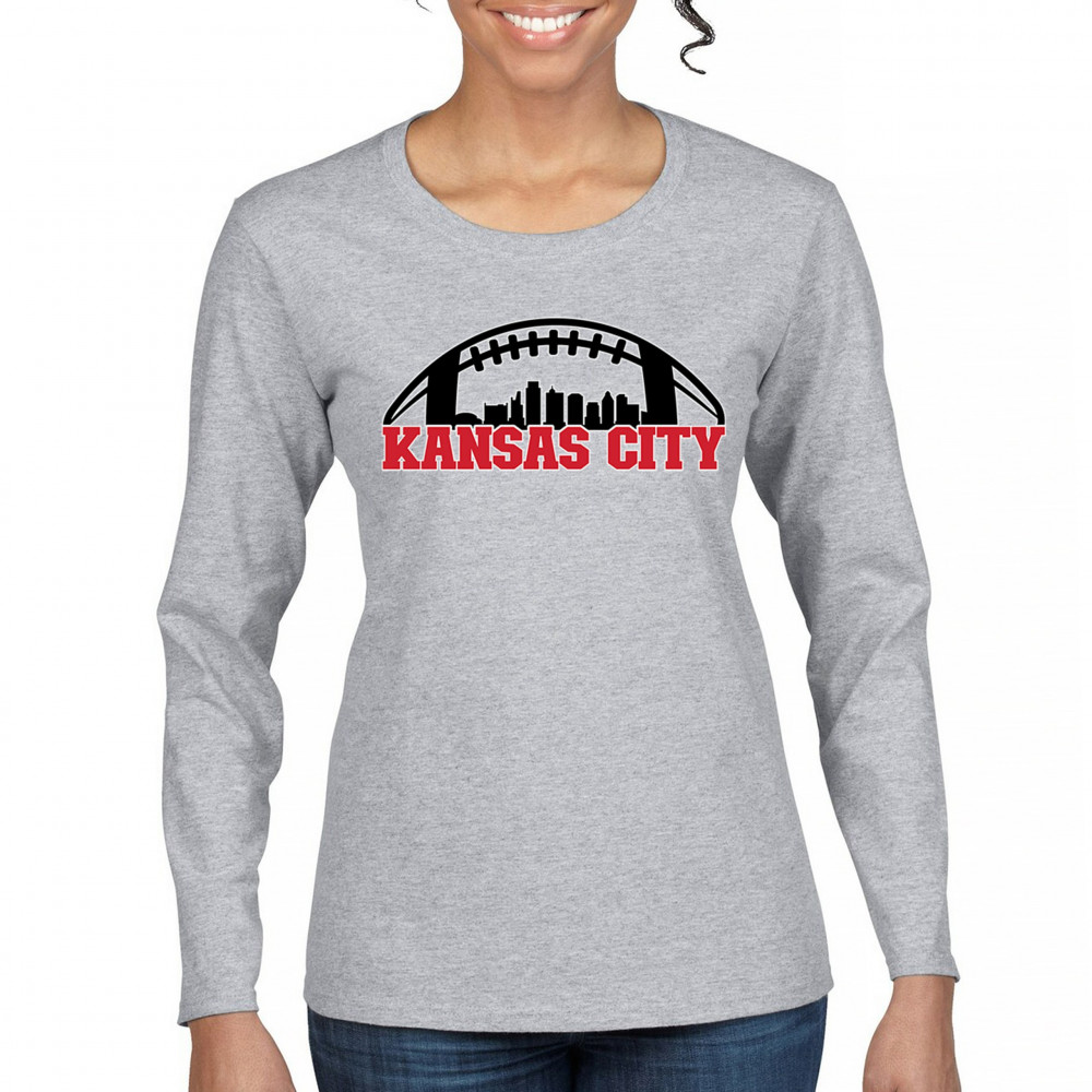 Celebrate Kansas City with a bold football design featuring the city skyline. Perfect for game days, tailgates, or proud sports fans.