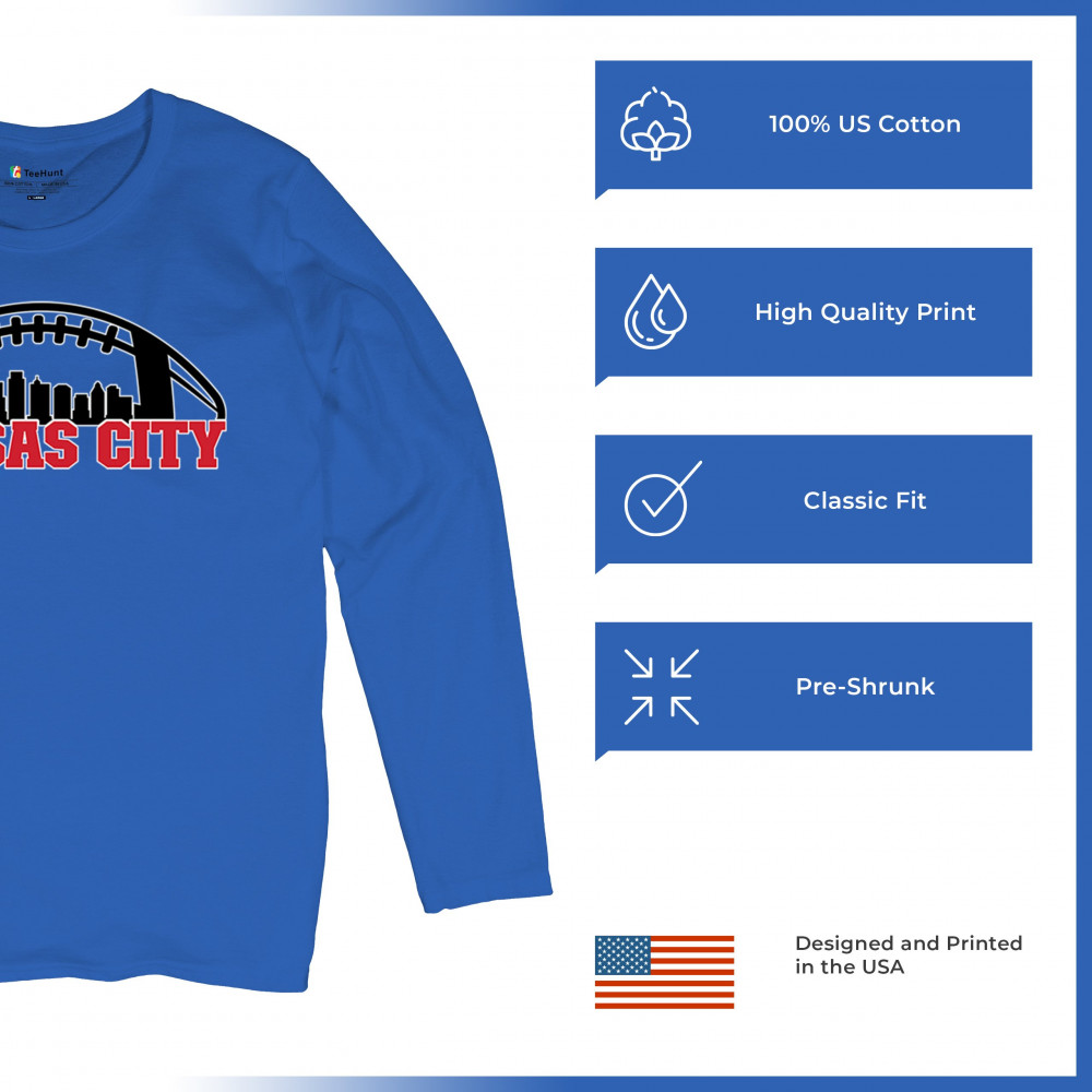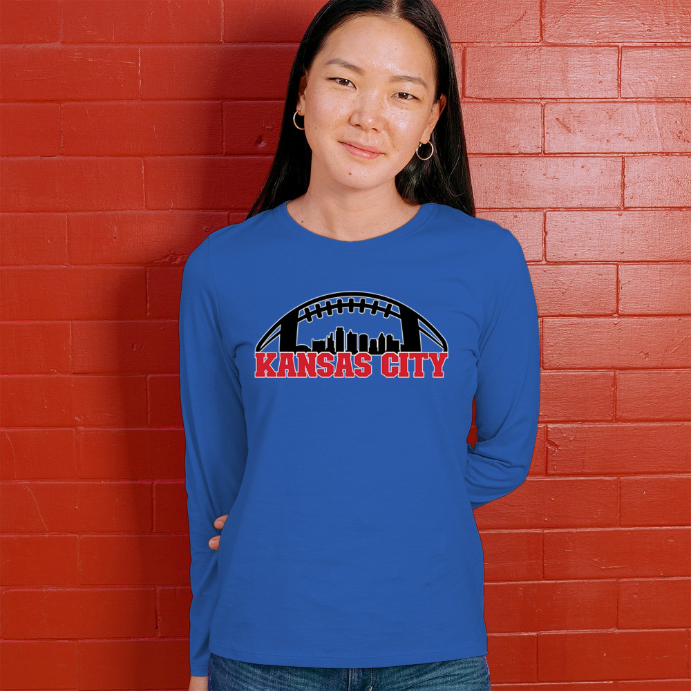 Celebrate Kansas City with a bold football design featuring the city skyline. Perfect for game days, tailgates, or proud sports fans.