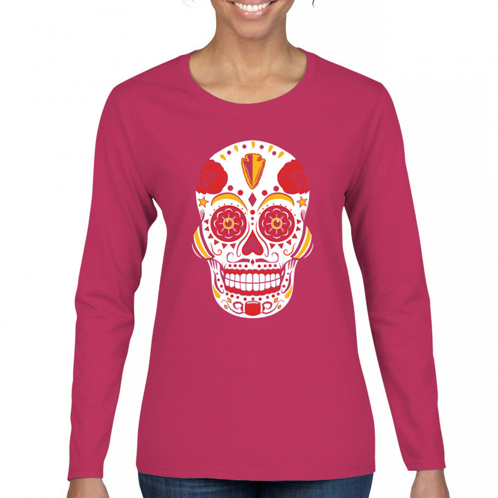 Celebrate Kansas City football with this Sugar Skull design inspired by Dia de los Muertos. Featuring Heart of America pride, red & gold tradition, and City of Fountains identity, it’s made for playoff energy, tailgate culture, and fantasy league rivalries. A bold calavera for KC fans.