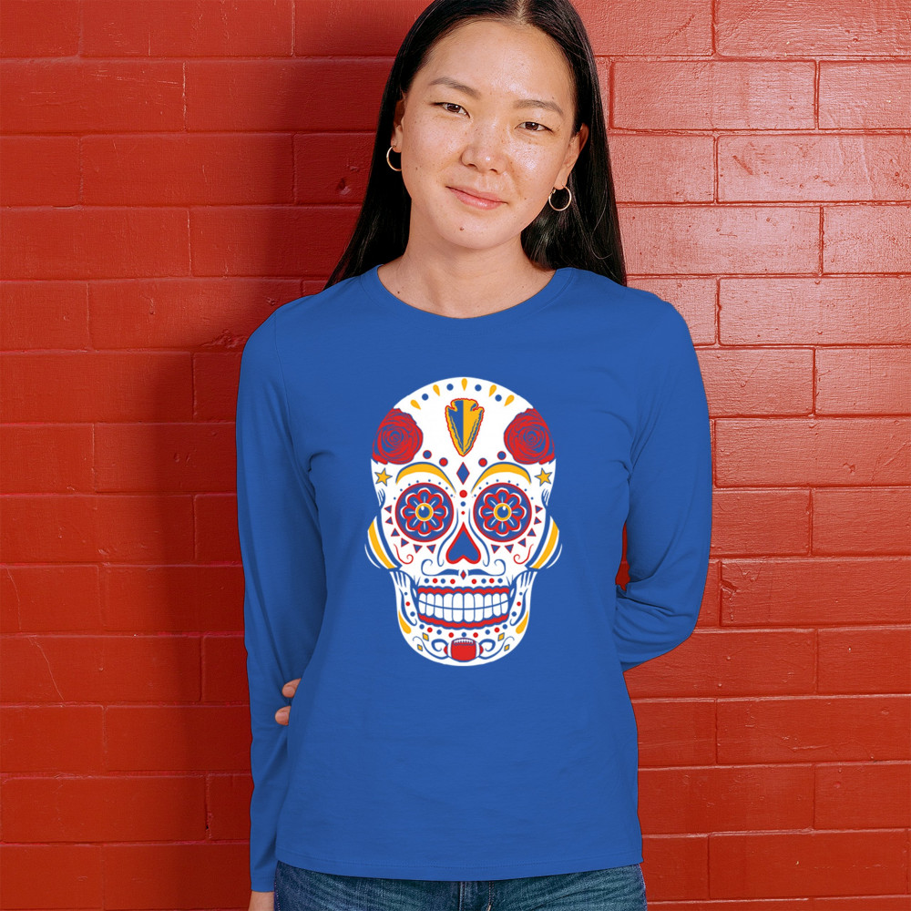 Celebrate Kansas City football with this Sugar Skull design inspired by Dia de los Muertos. Featuring Heart of America pride, red & gold tradition, and City of Fountains identity, it’s made for playoff energy, tailgate culture, and fantasy league rivalries. A bold calavera for KC fans.