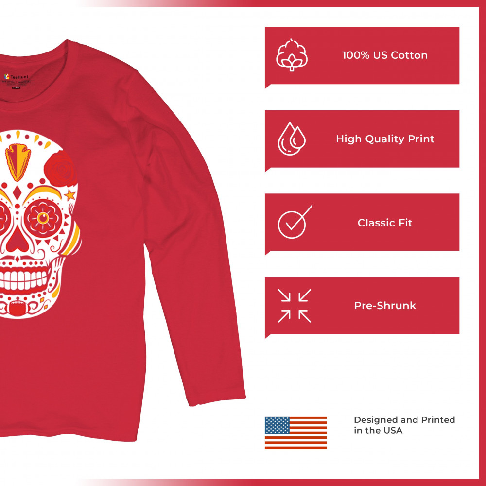 Celebrate Kansas City football with this Sugar Skull design inspired by Dia de los Muertos. Featuring Heart of America pride, red & gold tradition, and City of Fountains identity, it’s made for playoff energy, tailgate culture, and fantasy league rivalries. A bold calavera for KC fans.