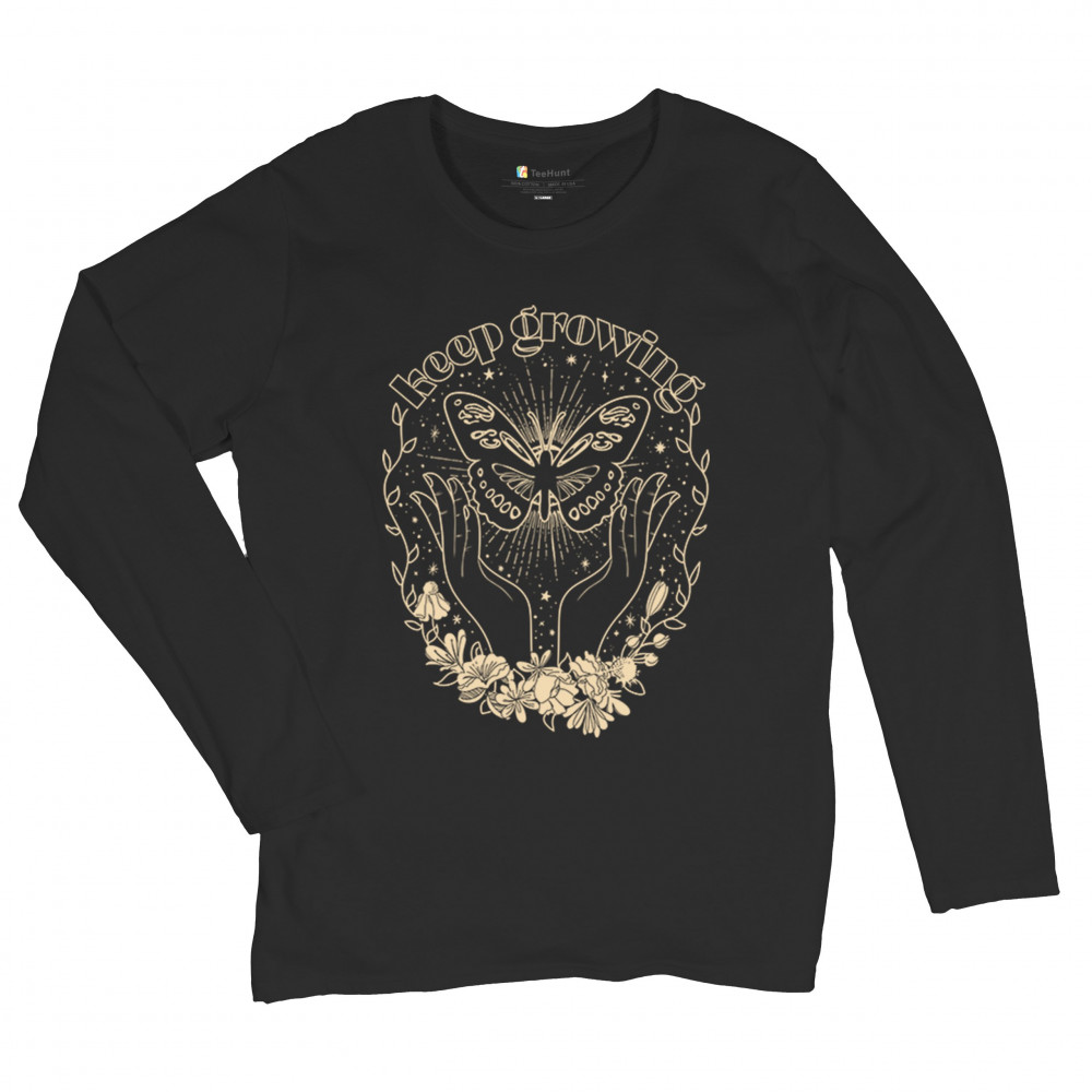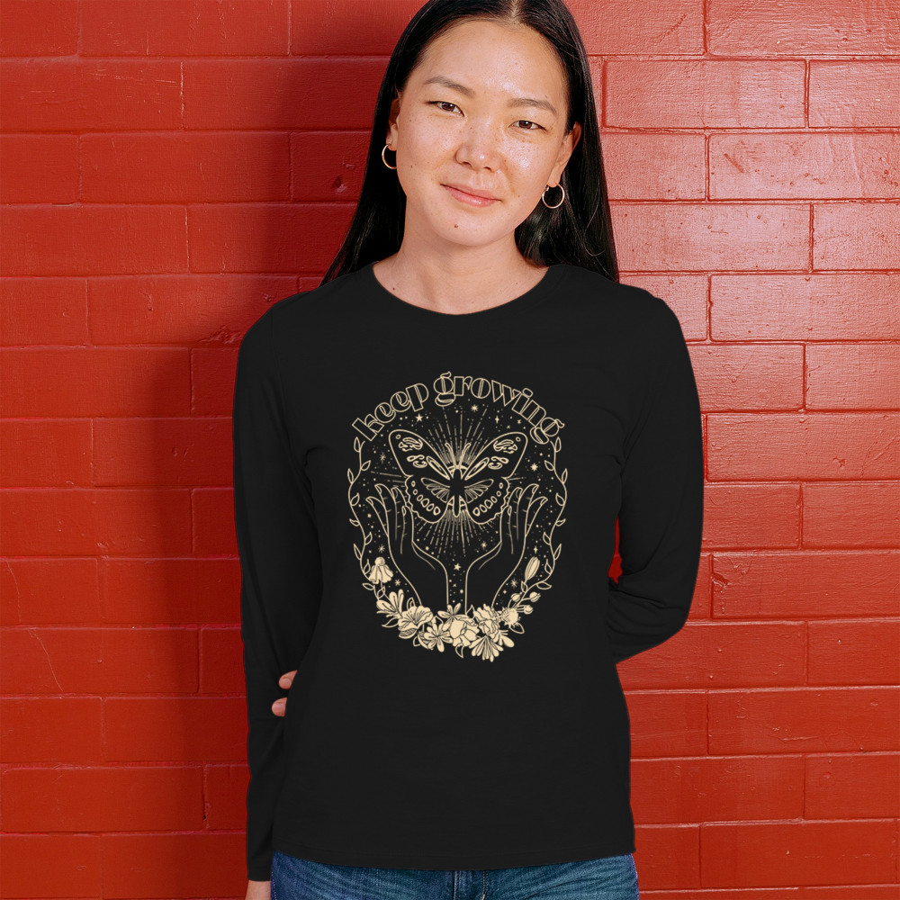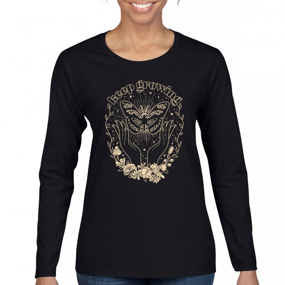 Step into your transformation with this Keep Growing design, featuring a celestial butterfly held between graceful hands and blooming flowers. A visual symbol of healing, renewal, and inner strength—perfect for journaling, meditation, yoga, or nature-inspired living. Ideal for dreamers, wellness seekers, and spiritual adventurers.