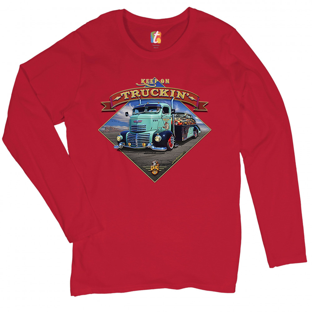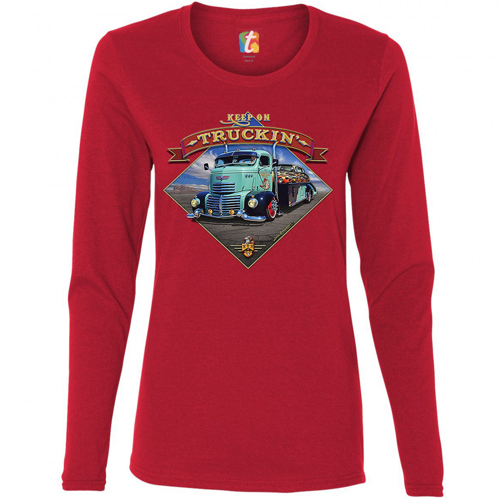KEEP ON TRUCKIN' keep on truckin women's long sleeve t-shirt route 66 retro vintage truck driver red