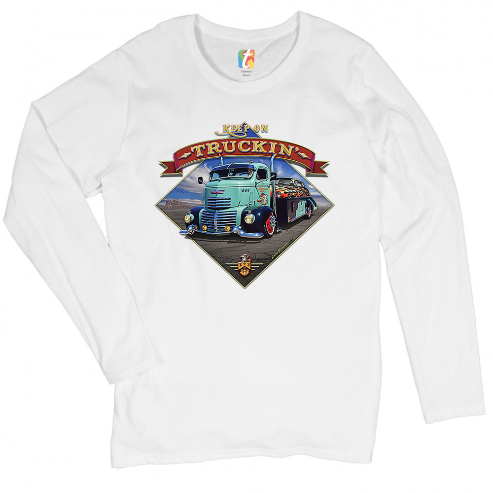 KEEP ON TRUCKIN' keep on truckin women's long sleeve t-shirt route 66 retro vintage truck driver white