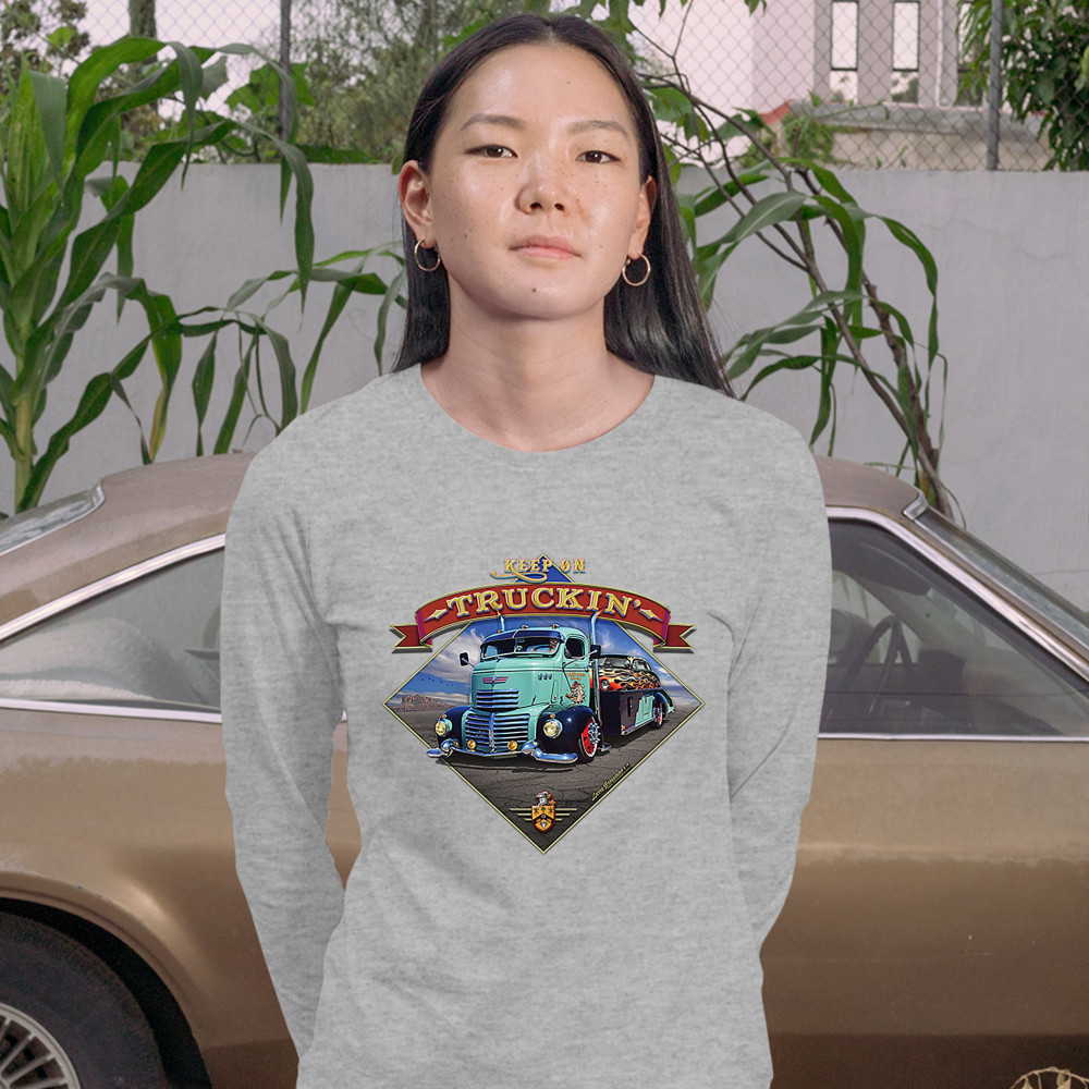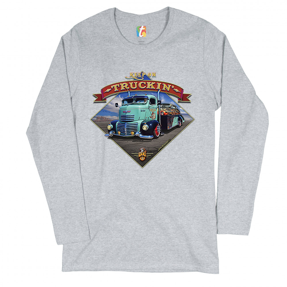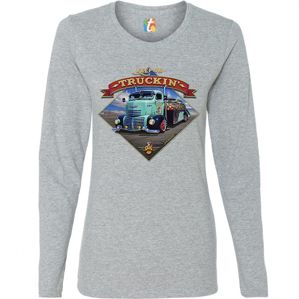 KEEP ON TRUCKIN' keep on truckin women's long sleeve t-shirt route 66 retro vintage truck driver gray