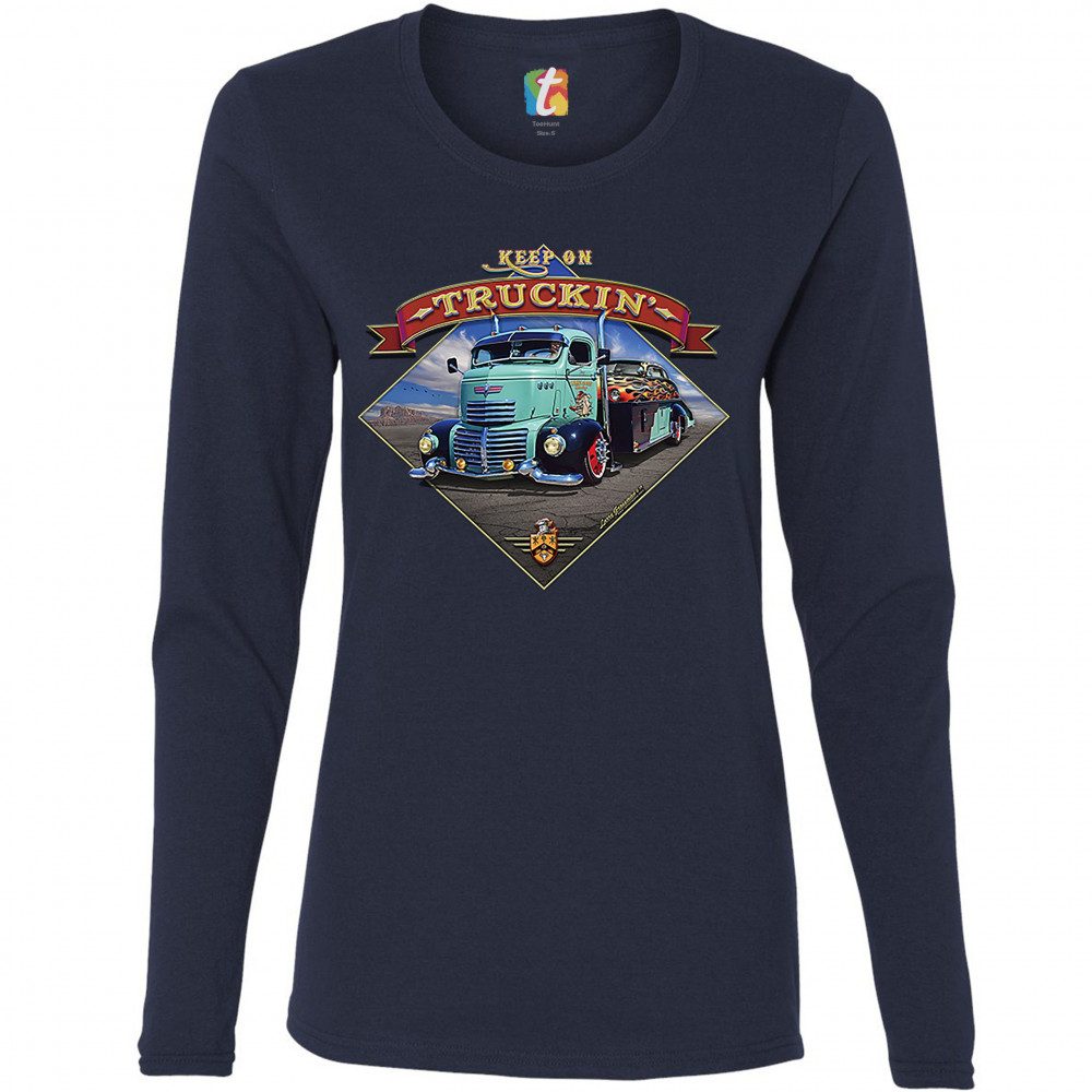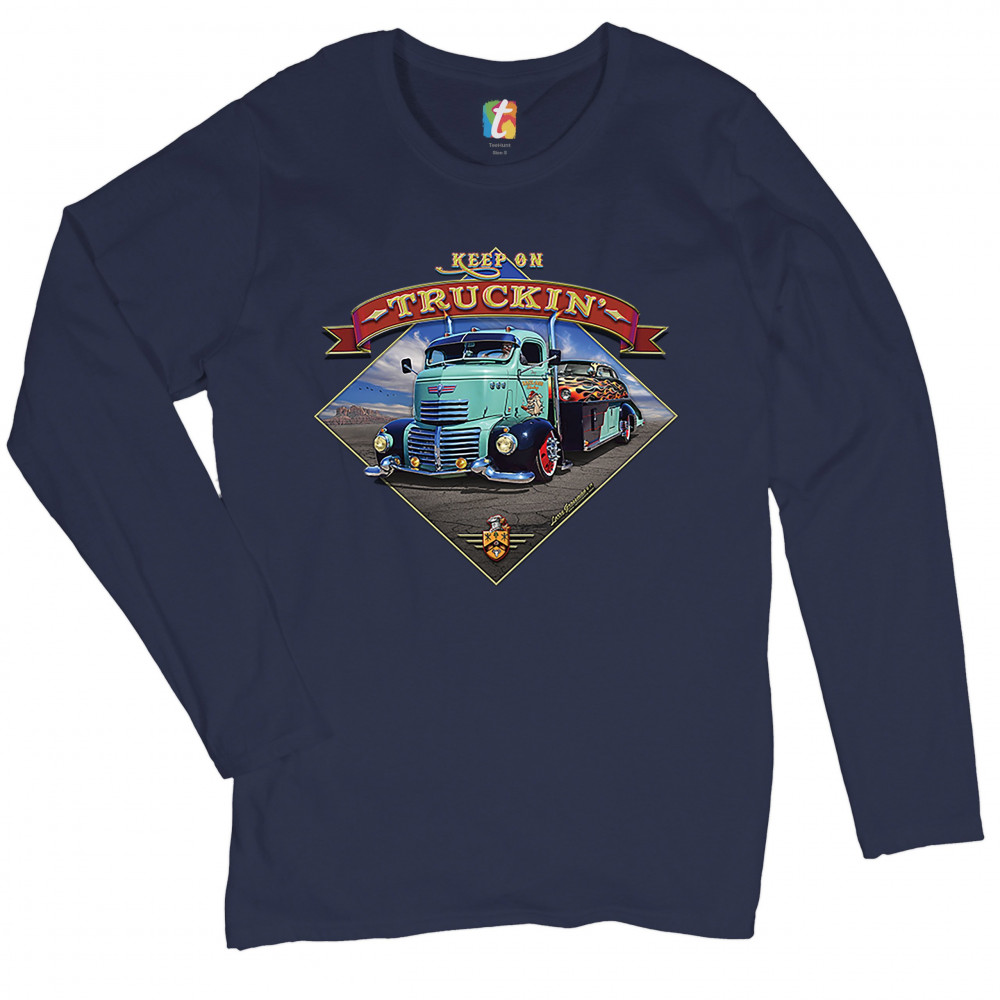 KEEP ON TRUCKIN' keep on truckin women's long sleeve t-shirt route 66 retro vintage truck driver navy blue