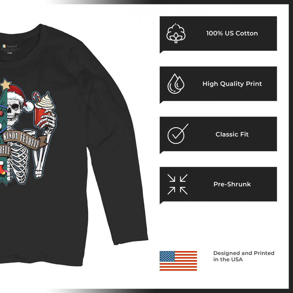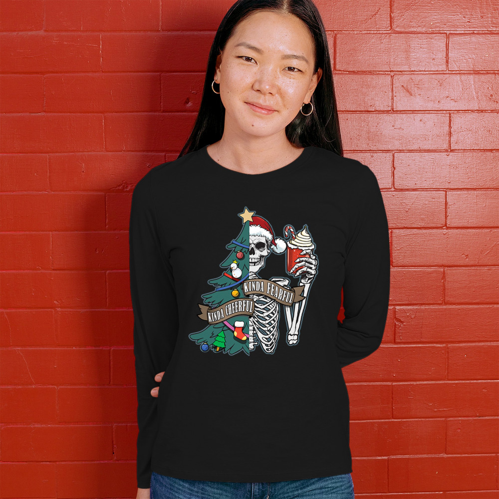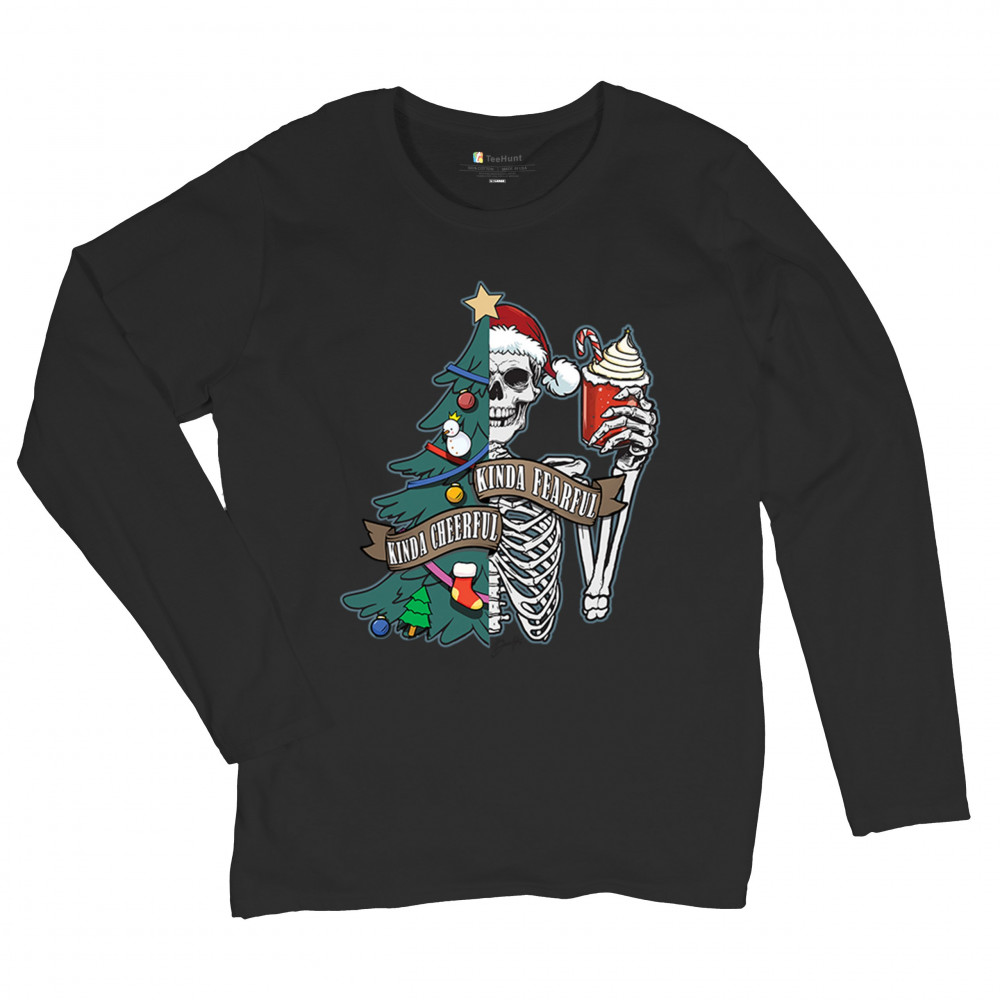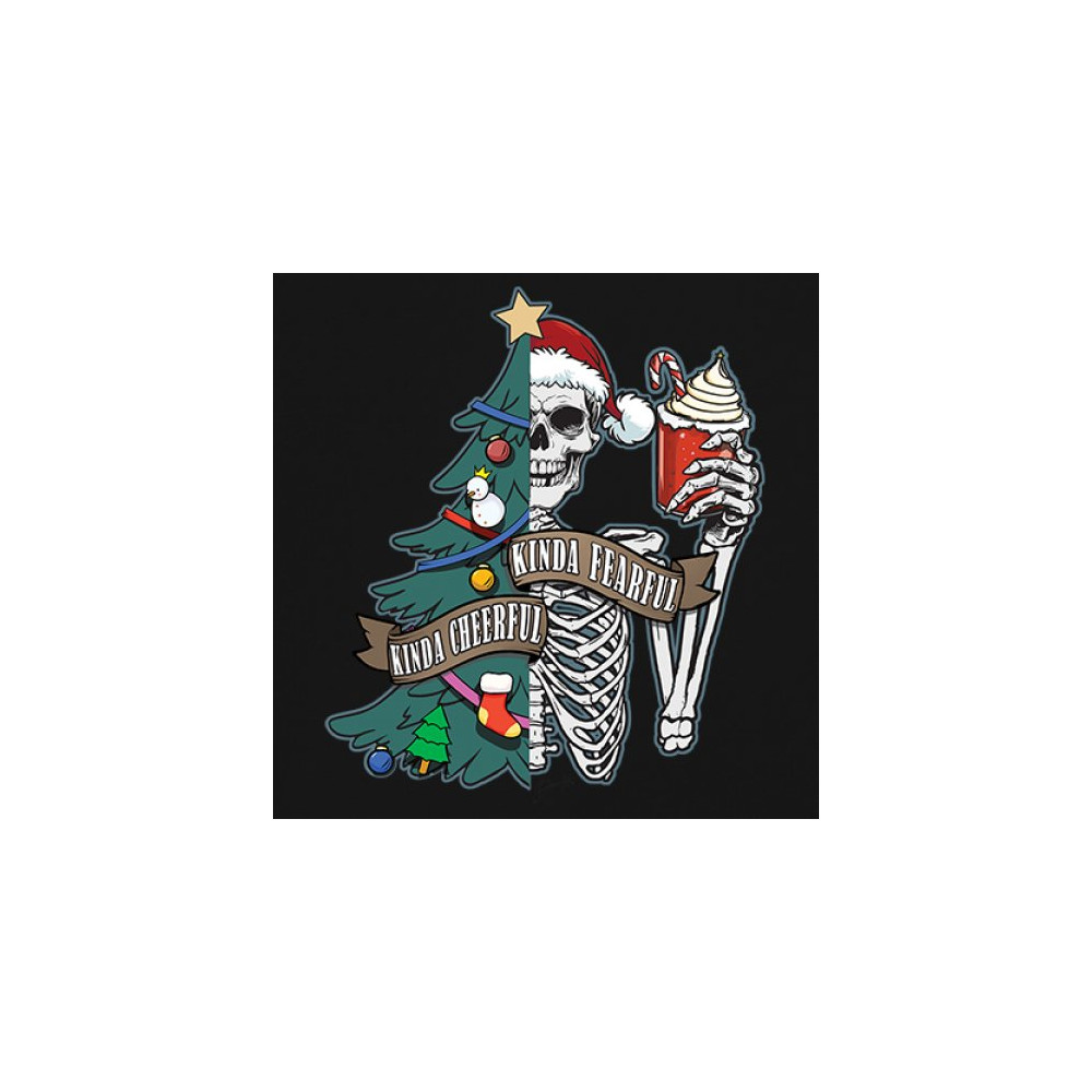 This creative Kinda Cheerful, Kinda Fearful design is a perfect blend of festive and spooky fun! Featuring a half-decorated Christmas tree and skeleton, it’s ideal for those who love combining Halloween and Christmas vibes. Great for secret Santa gifts, matching holiday pajamas, or rocking at your next ugly sweater contest. Perfect for office parties, family mornings, or simply adding some unique charm to your Feliz Navidad celebrations.