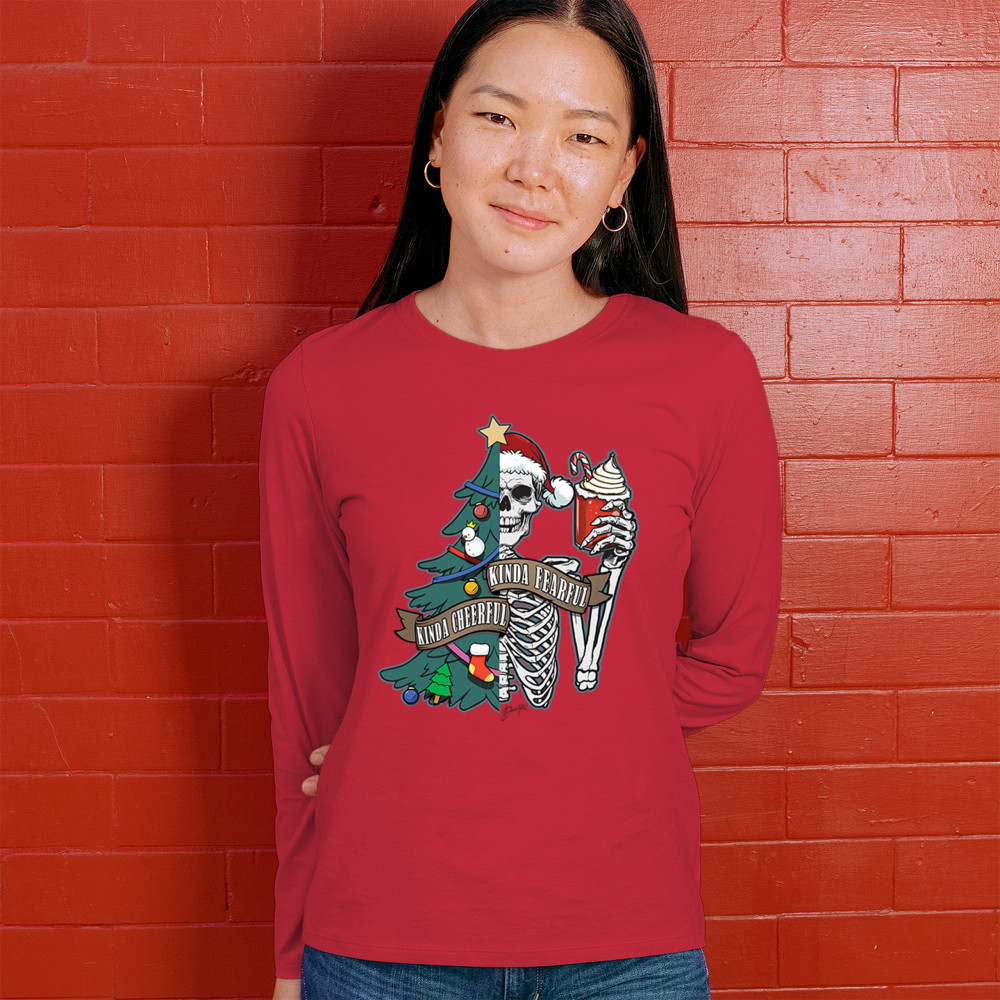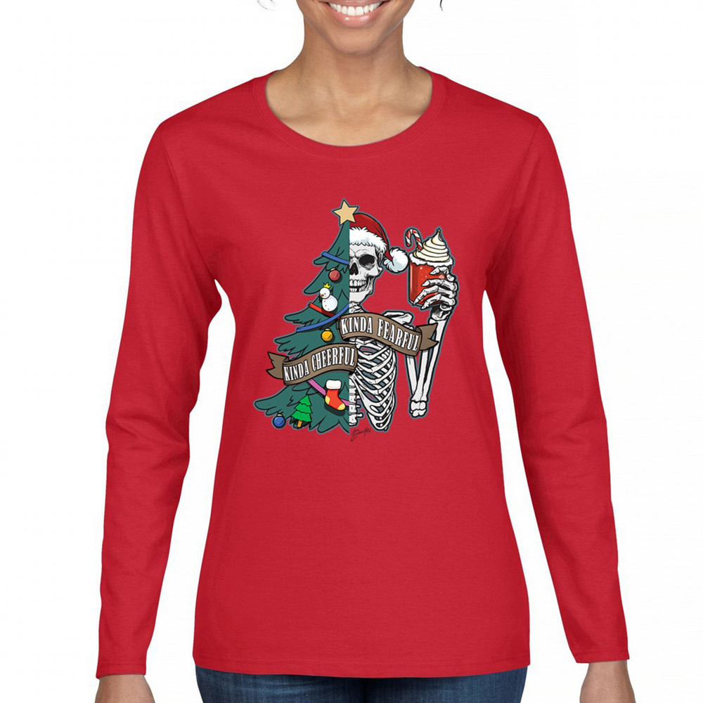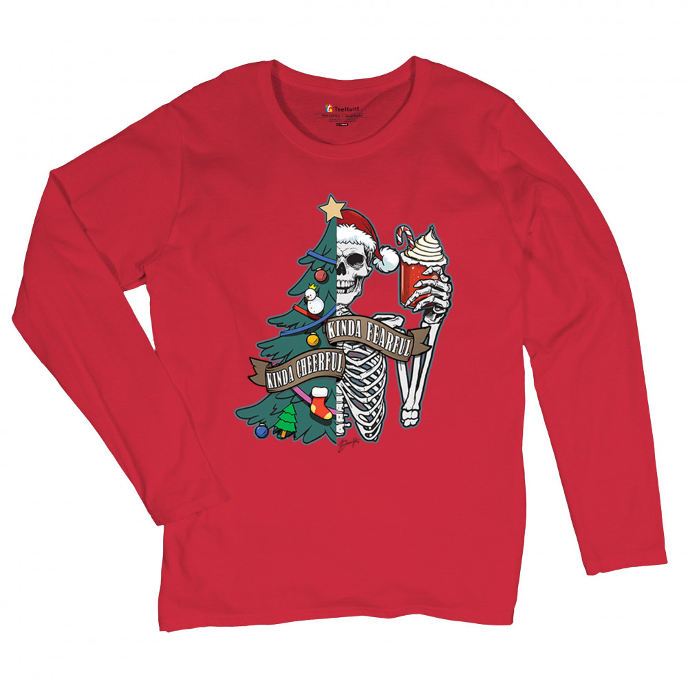 This creative Kinda Cheerful, Kinda Fearful design is a perfect blend of festive and spooky fun! Featuring a half-decorated Christmas tree and skeleton, it’s ideal for those who love combining Halloween and Christmas vibes. Great for secret Santa gifts, matching holiday pajamas, or rocking at your next ugly sweater contest. Perfect for office parties, family mornings, or simply adding some unique charm to your Feliz Navidad celebrations.