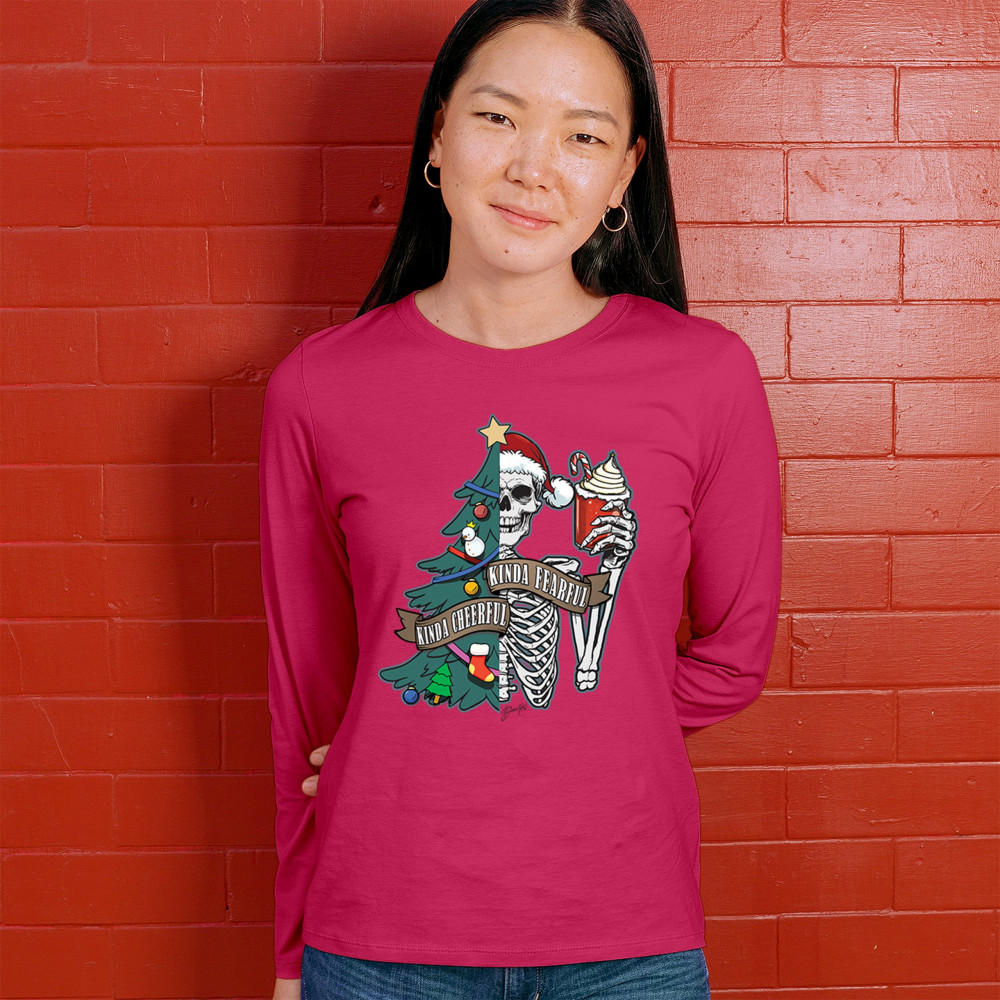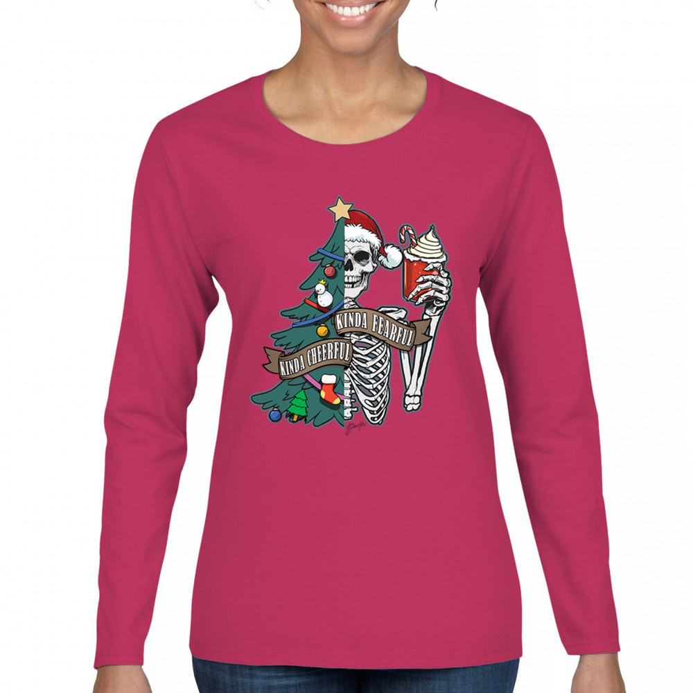 This creative Kinda Cheerful, Kinda Fearful design is a perfect blend of festive and spooky fun! Featuring a half-decorated Christmas tree and skeleton, it’s ideal for those who love combining Halloween and Christmas vibes. Great for secret Santa gifts, matching holiday pajamas, or rocking at your next ugly sweater contest. Perfect for office parties, family mornings, or simply adding some unique charm to your Feliz Navidad celebrations.