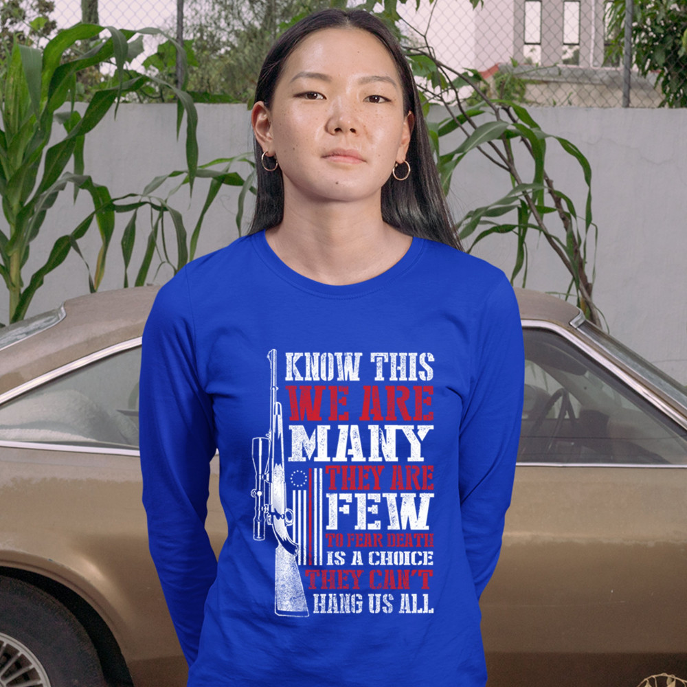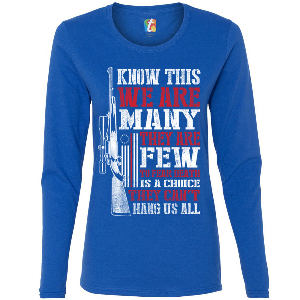 KNOW THIS WE ARE MANY THEY ARE FEW women's long sleeve t-shirt 2nd amendment royal blue