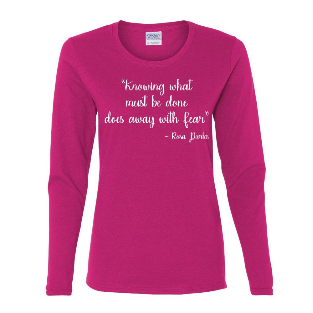 KNOWING WHAT MUST BE DONE - ROSA PARKS women's long sleeve tee civil rights pink