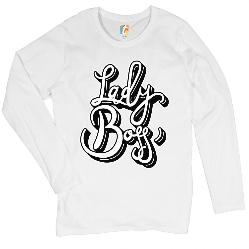 LADY BOSS women's long sleeve t-shirt badass mother's day girl power mom life white