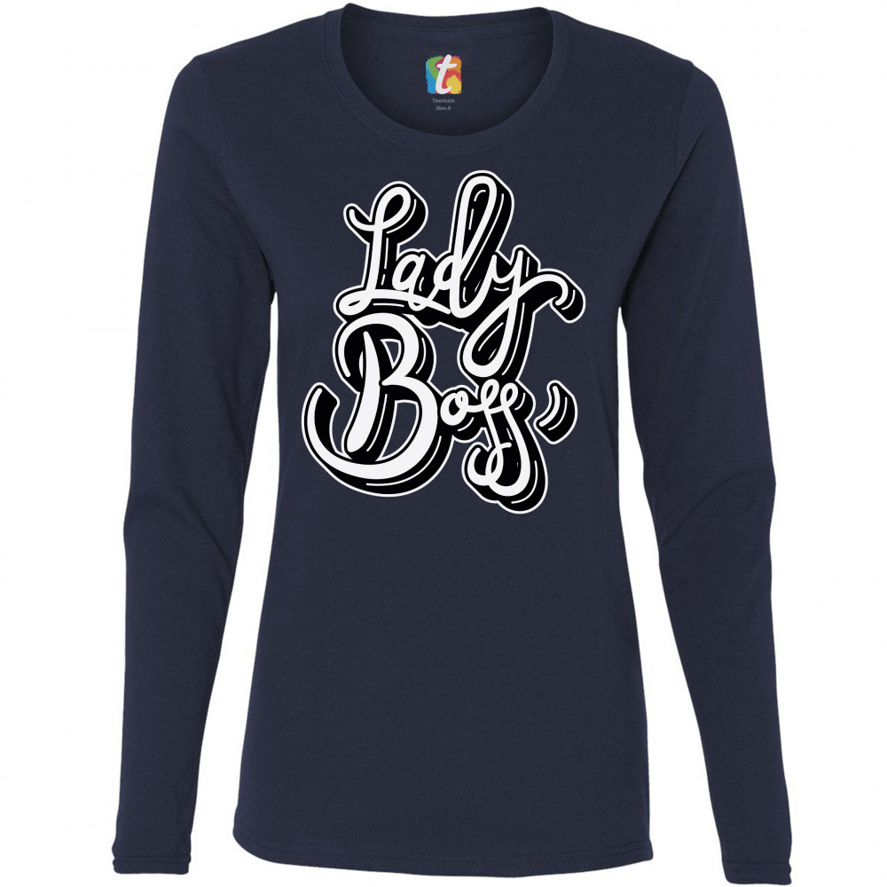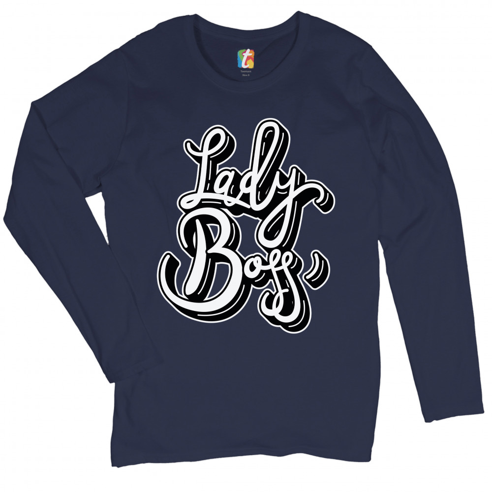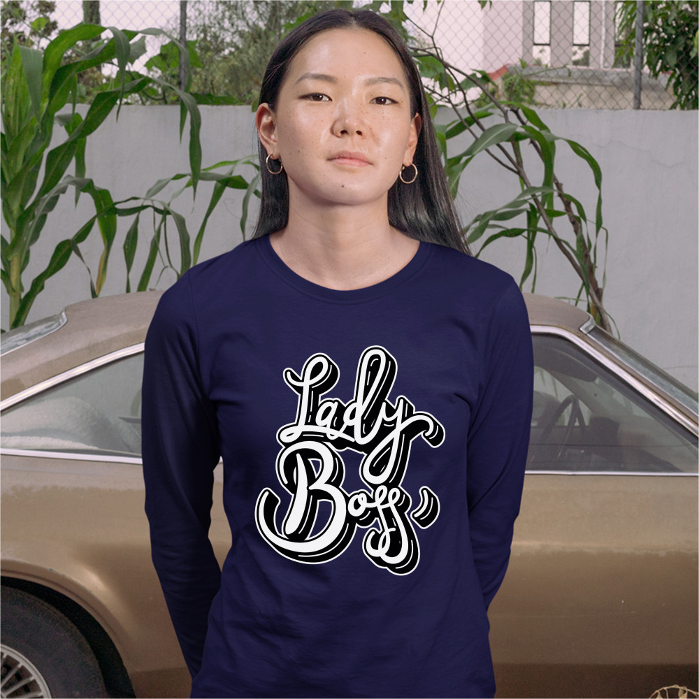 LADY BOSS women's long sleeve t-shirt badass mother's day girl power mom life navy blue
