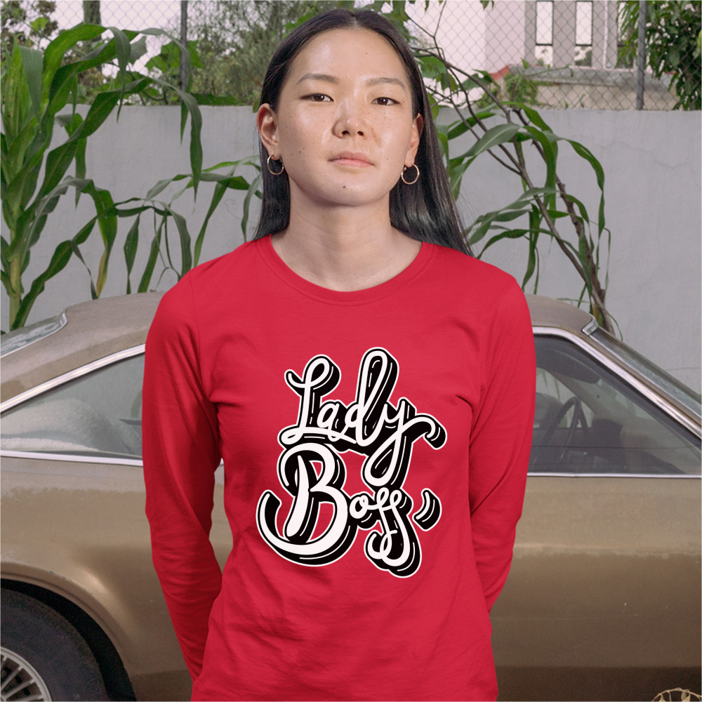 LADY BOSS women's long sleeve t-shirt badass mother's day girl power mom life red