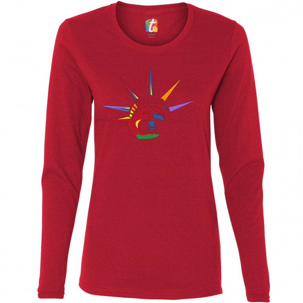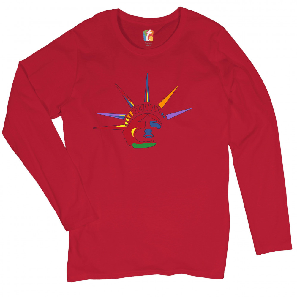 LADY LIBERTY women's long sleeve t-shirt new york statue of liberty 4th of july red