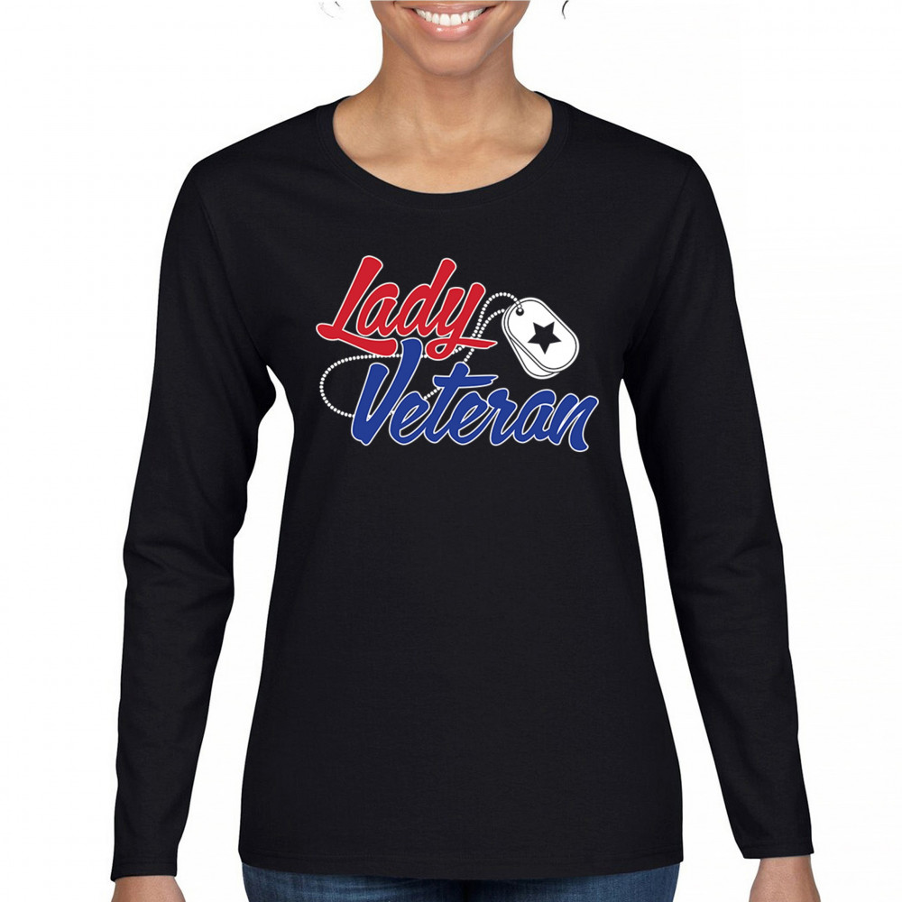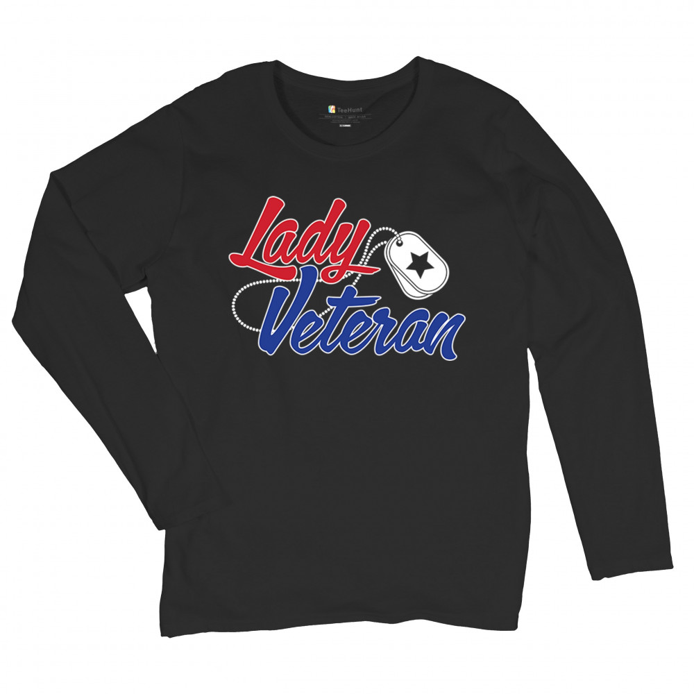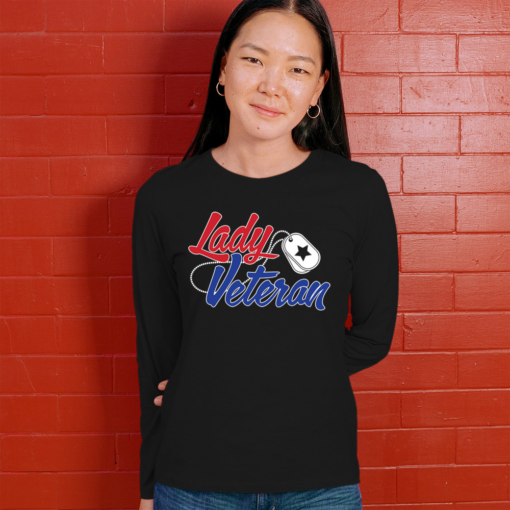 Celebrate female veterans with our "Lady Veteran" shirt. Bold red and blue design, perfect for Veterans Day and everyday wear. Honor and pride in service.