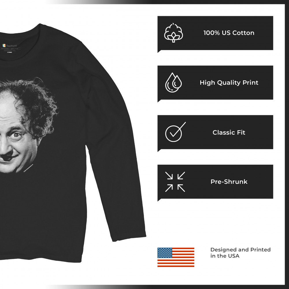 Our design breathes new life into Larry's legendary persona, featuring his playful gaze that Three Stooges fans know and love. This monochromatic portrayal is a homage to the subtleties of vintage comedy, highlighting the timelessness of classic entertainment. It's a perfect blend of nostalgia and merriment, capturing Larry's essence in a way that fans, new and old, will treasure.