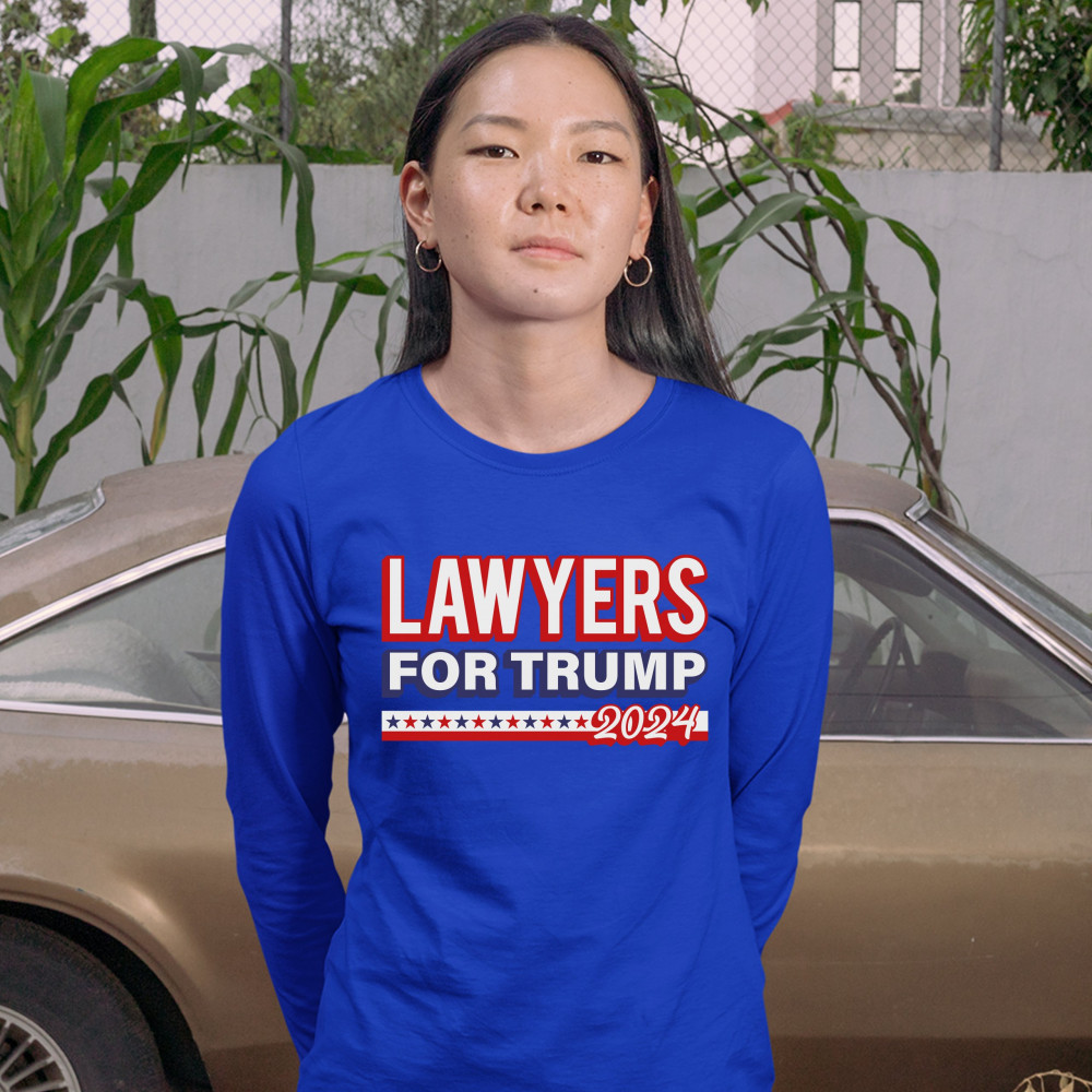 A political print saying "lawyers for Trump 2024". A great choice to wear for a Trump rally or give as a gift to a Donald Trump supporter before 2024 presidential elections.